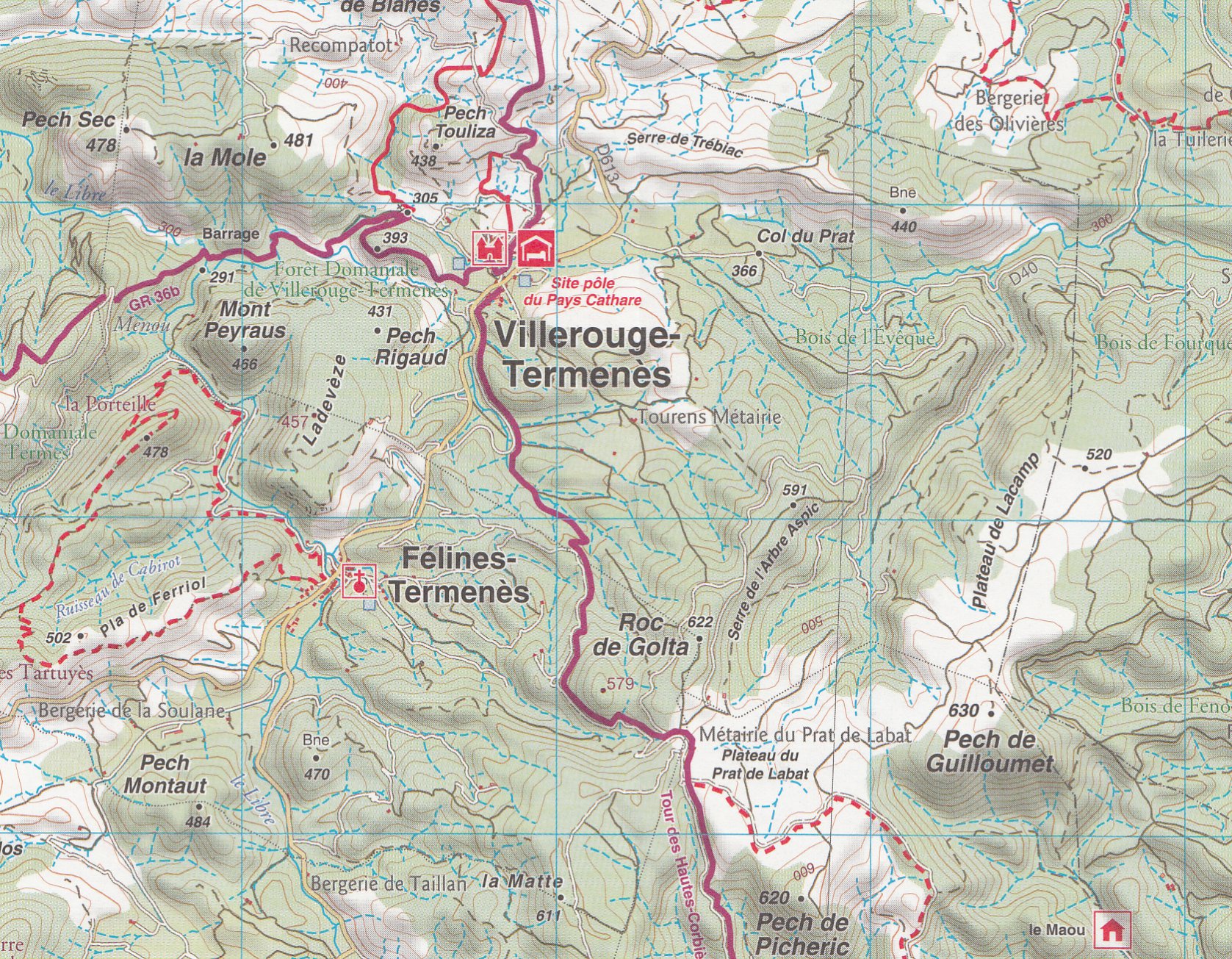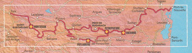 #9 Sentier Cathare, Quéribus, Peyrepertuse 1:55t mapa RANDO