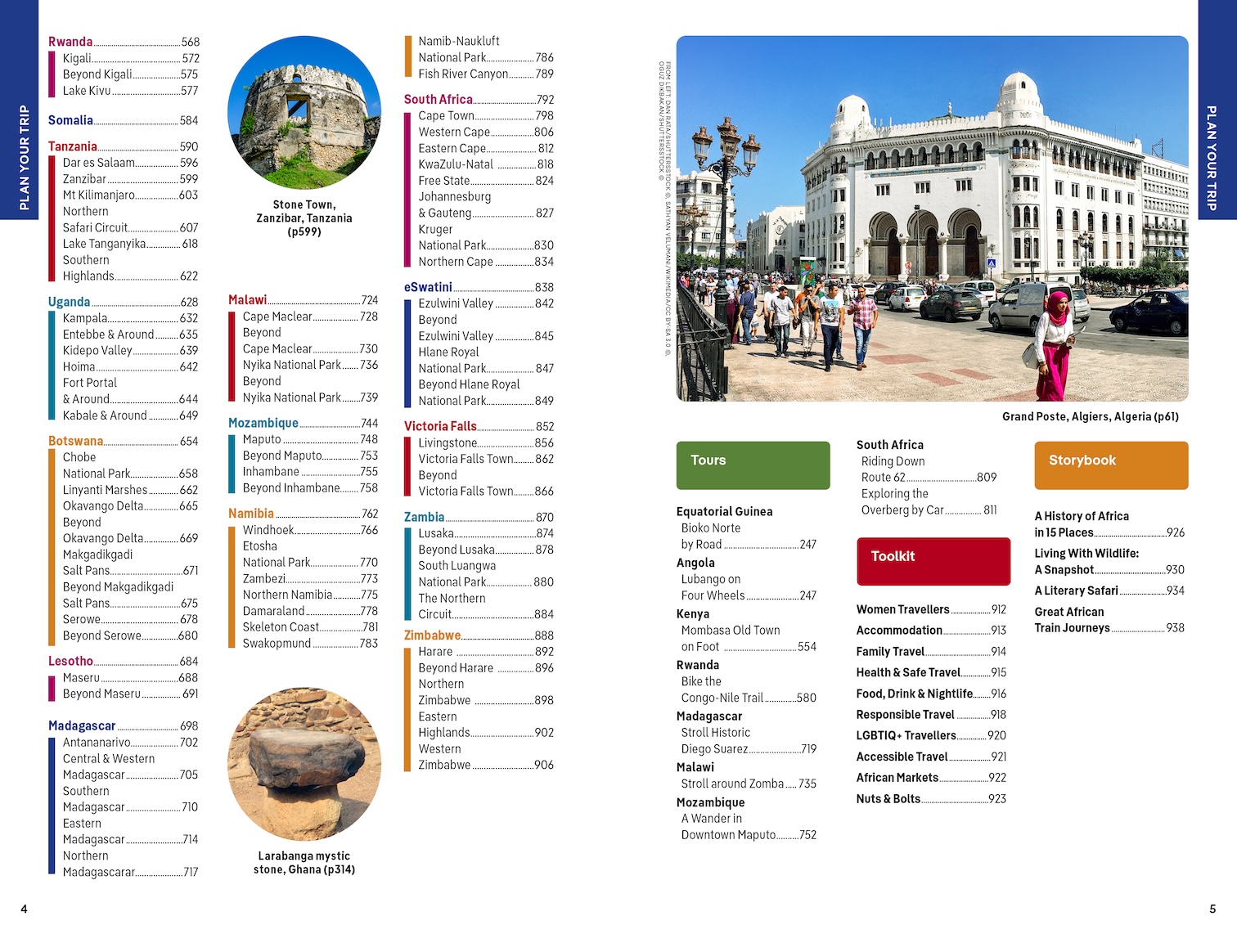 Lonely Planet's Africa is our most comprehensive guide that extensively covers all the continent has to offer, with recommendations for both popular and lesser-known experiences. Visit wineries on the cape, swim the turquoise waters of Mozambique and view the pyramids of Giza; all with your trusted travel companion.