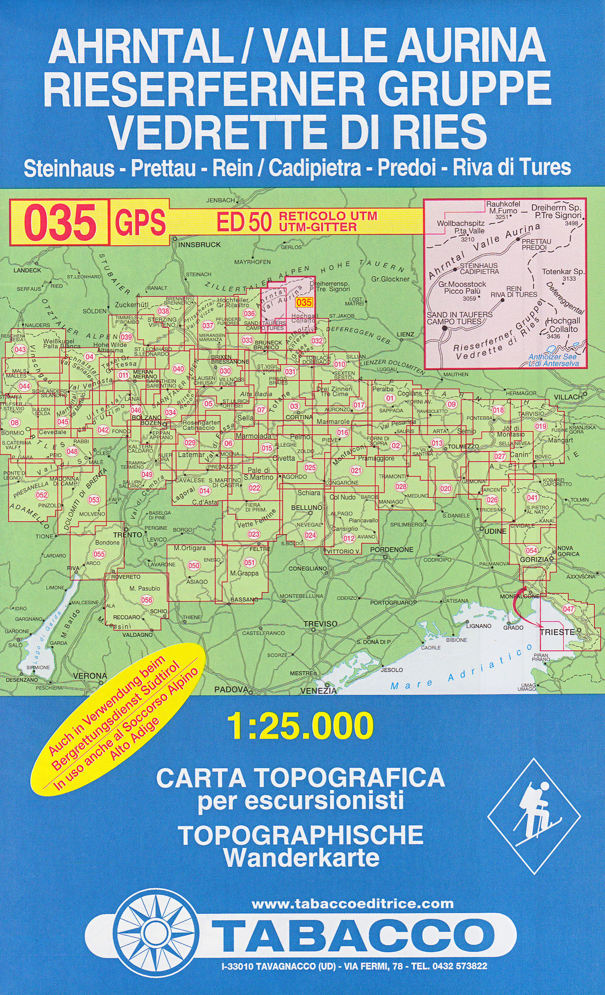 Ahrntal / Walle Aurina, Rieserferner Gruppe 1:25 000 turistická mapa TABACCO #35