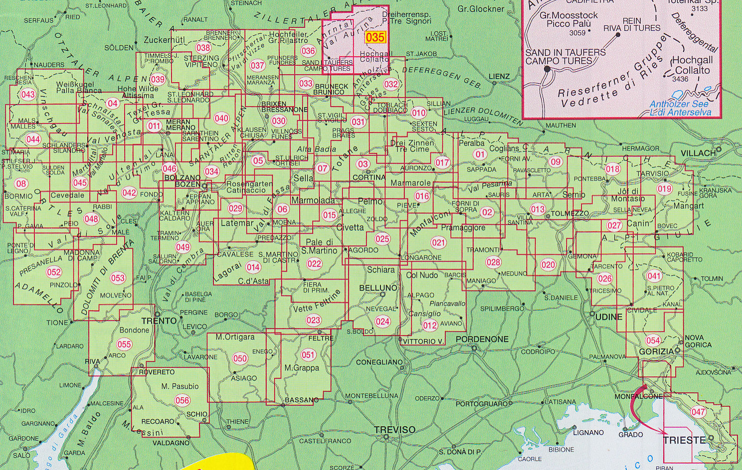 • náhled Ahrntal / Walle Aurina, Rieserferner Gruppe 1:25 000 turistická mapa TABACCO #35