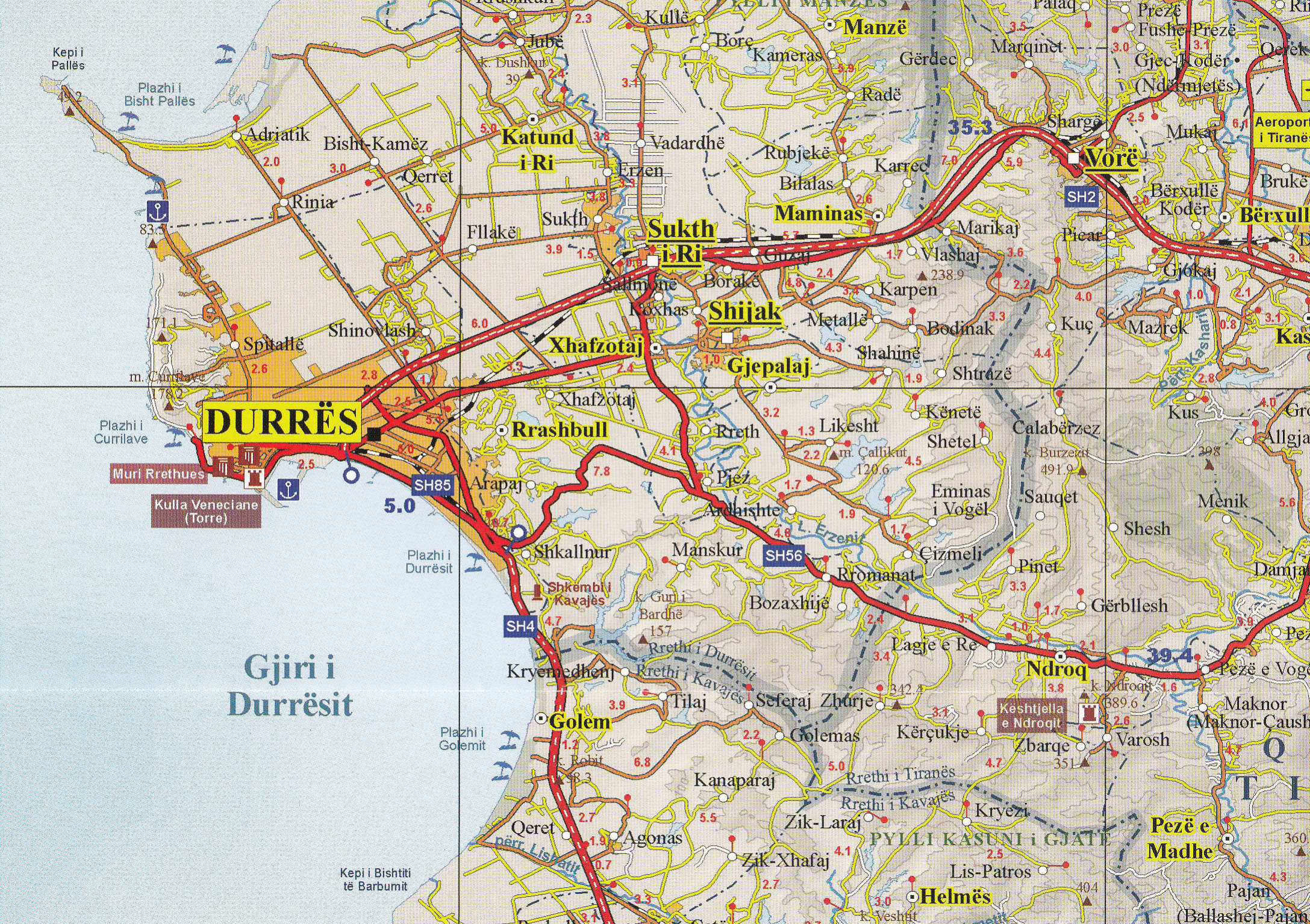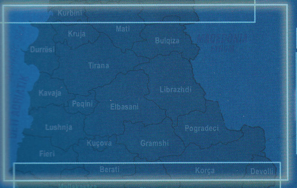 Road and travel map of central Albania at 1:200,000, sheet size 98 x 68 cm / 38.5 x 26.5 in.