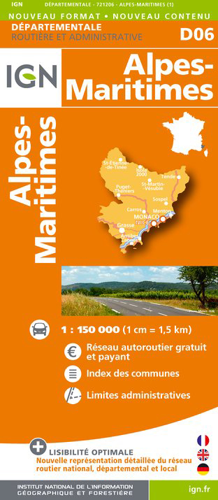 Alpes-Maritimes departement 1:150.000 mapa IGN