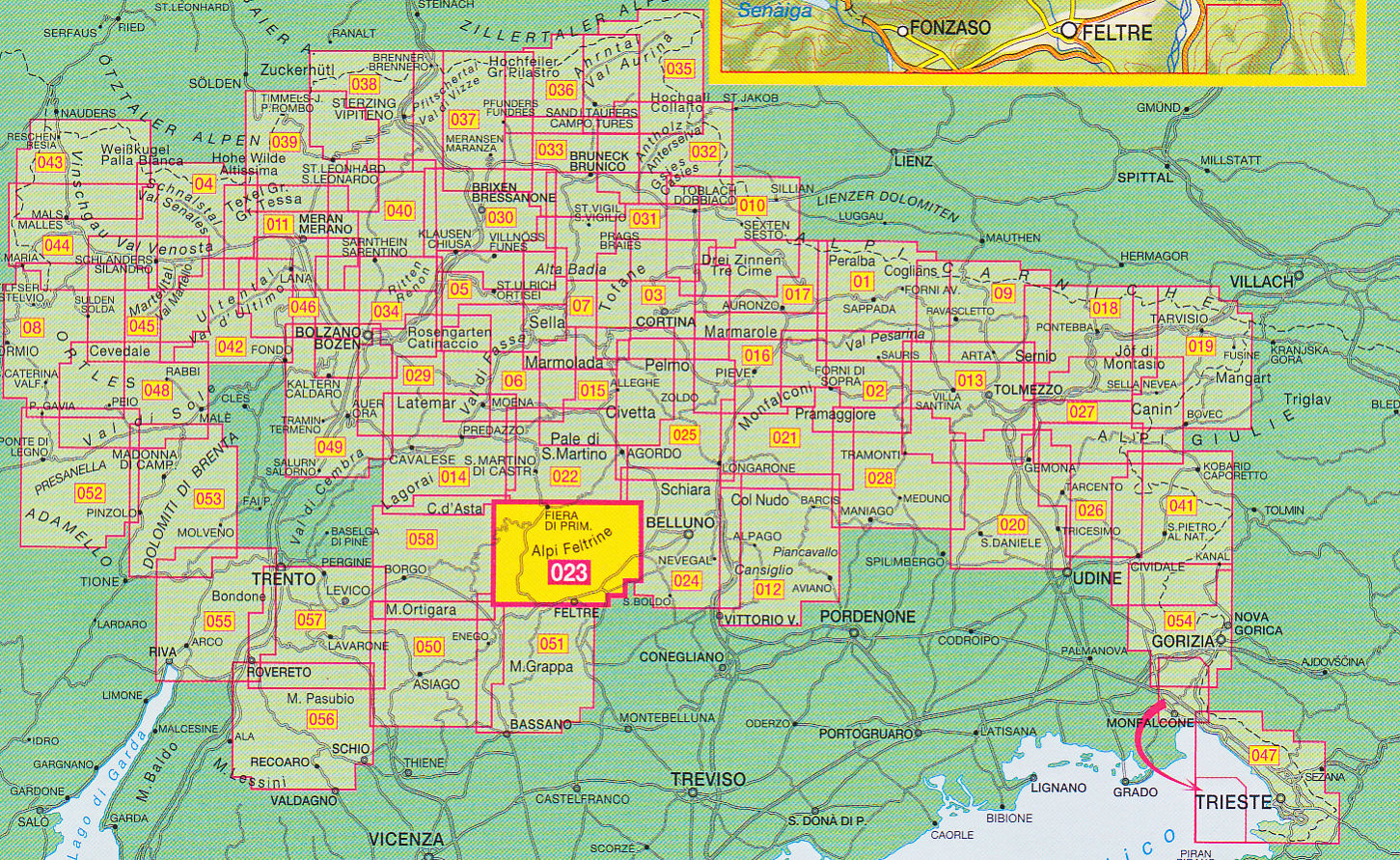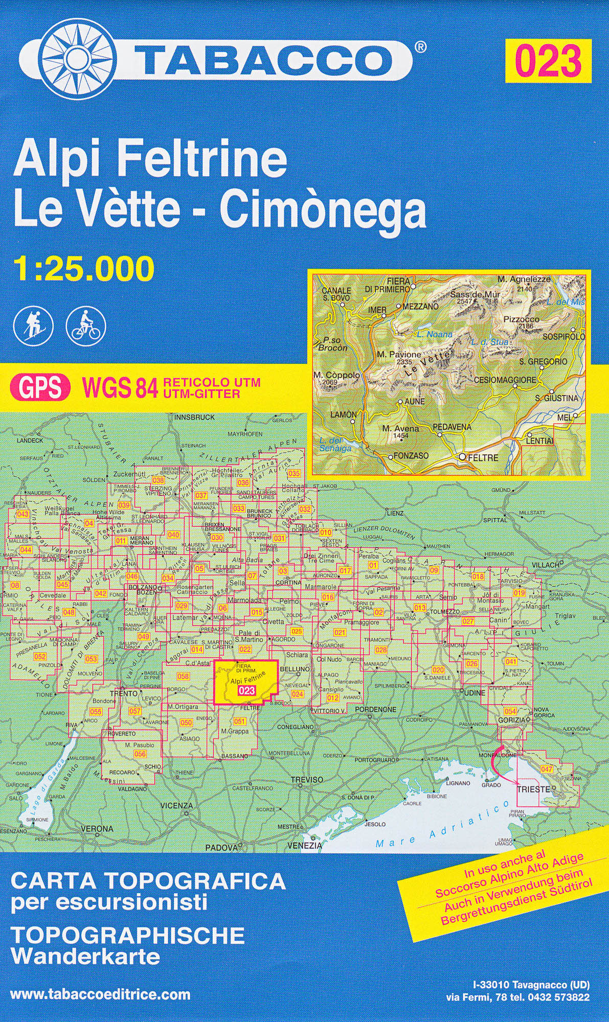 Alpi Feltrine, Le Vette- Cimonega 1:25 000 turistická mapa TABACCO #23
