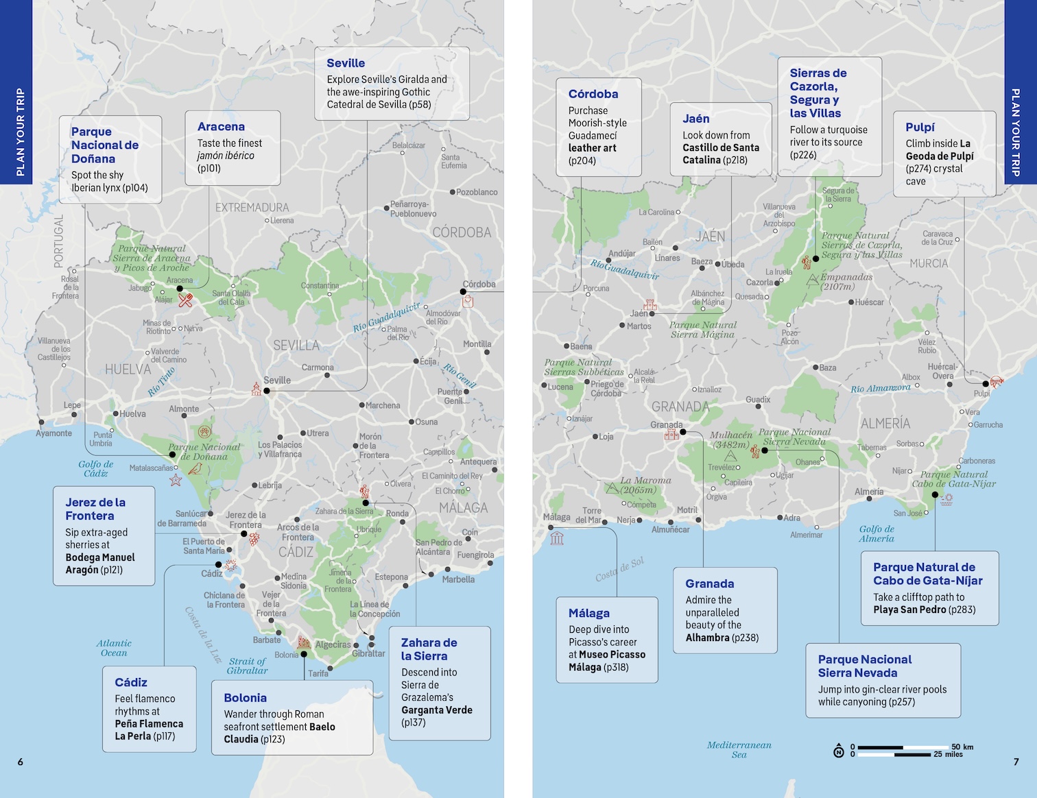 Covers: Sevilla & Huelva; Cádiz & Gibraltar; Málaga; Córdoba & Jaén; Granada & Almería