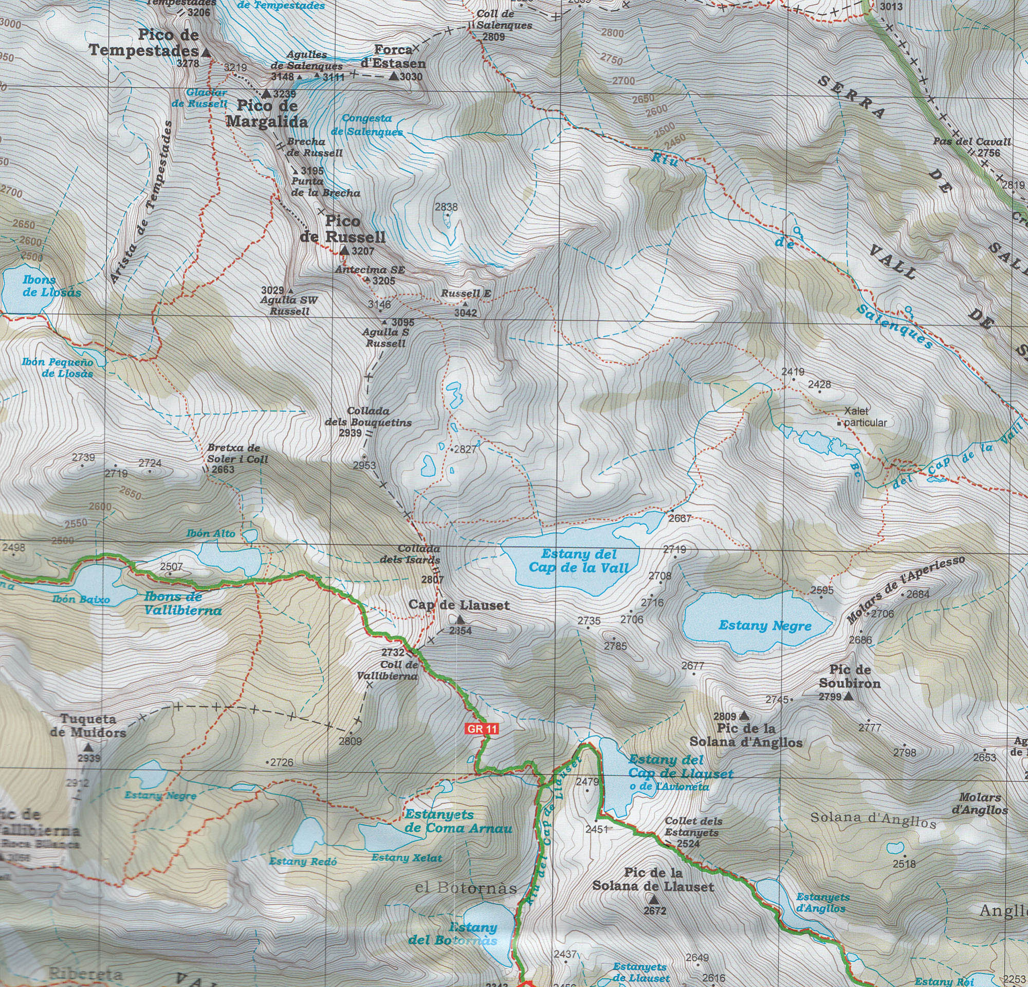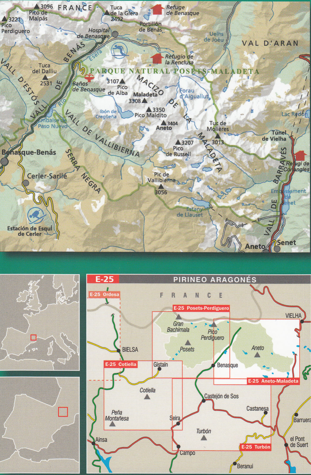 Rozsáhlá a velmi populární série pěších map od vydavatelství Alpina pokrývající Pyreneje, Katalánsko a další vybrané turistické oblasti ve Španělsku, včetně Malorky. Měřítka se pohybují od 1:50.000 do 1:10.000 - většina titulů je však v měřítku 1:25.000. Mapy mají vrstevnice, obvykle v intervalech 20 m nebo 10 m, se stínovaným reliéfem a kótami. Mapa klasicky zobrazuje turistické trasy, dálkové trasy, kempy, horské chaty, boudy, horolezecké lokality, jeskyně, trasy pro horská kola a jízdu na koni a lyžařská střediska.Všechny nejnovější verze mají UTM systém a značení zeměpisné šířky a délky v intervalu 1 ". Legenda u všech titulů zahrnuje angličtinu.Každý titul má samostatnou brožuru s obecnými informacemi o oblasti, popisy vybraných turistických tras, seznam ubytování s adresami, atd. Ne u všech titulů je to včetně angličtiny – raději se ptejte.