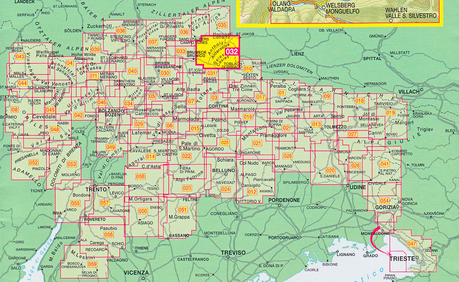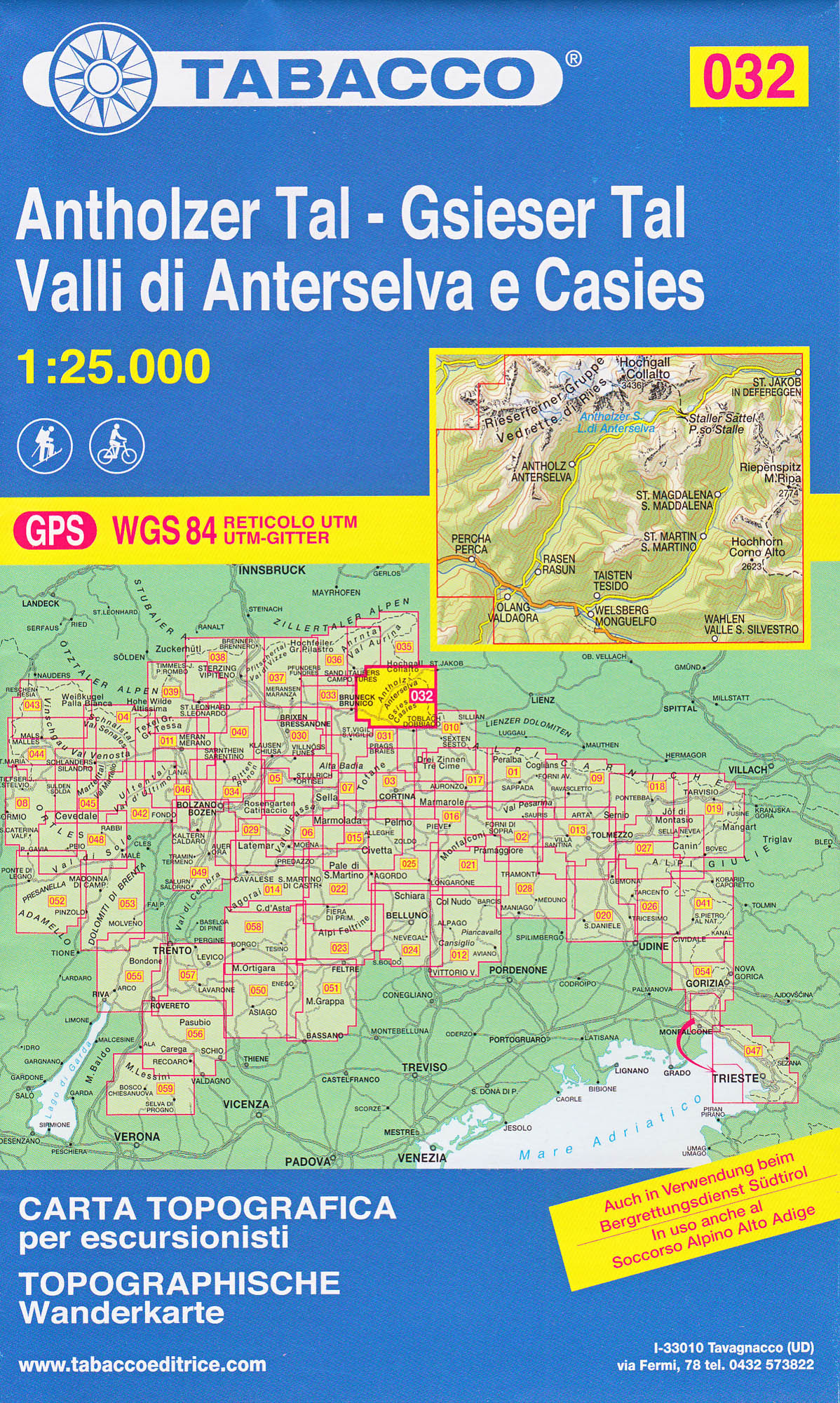 Antholzer Tal – Gsieser Tal, Valli di Anterselva 1:25 000 tur. mapa TABACCO #32