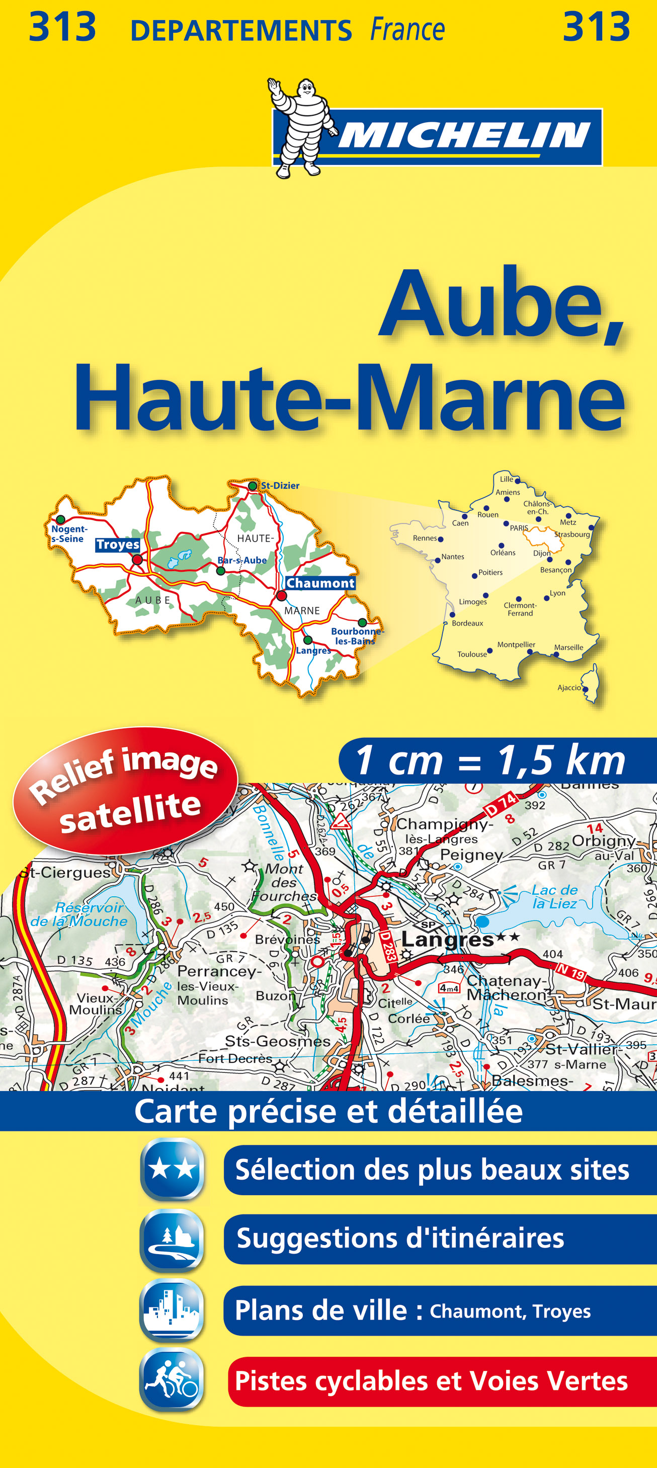 Aube, Haute-Marne (Francie), mapa 1:150 000, MICHELIN