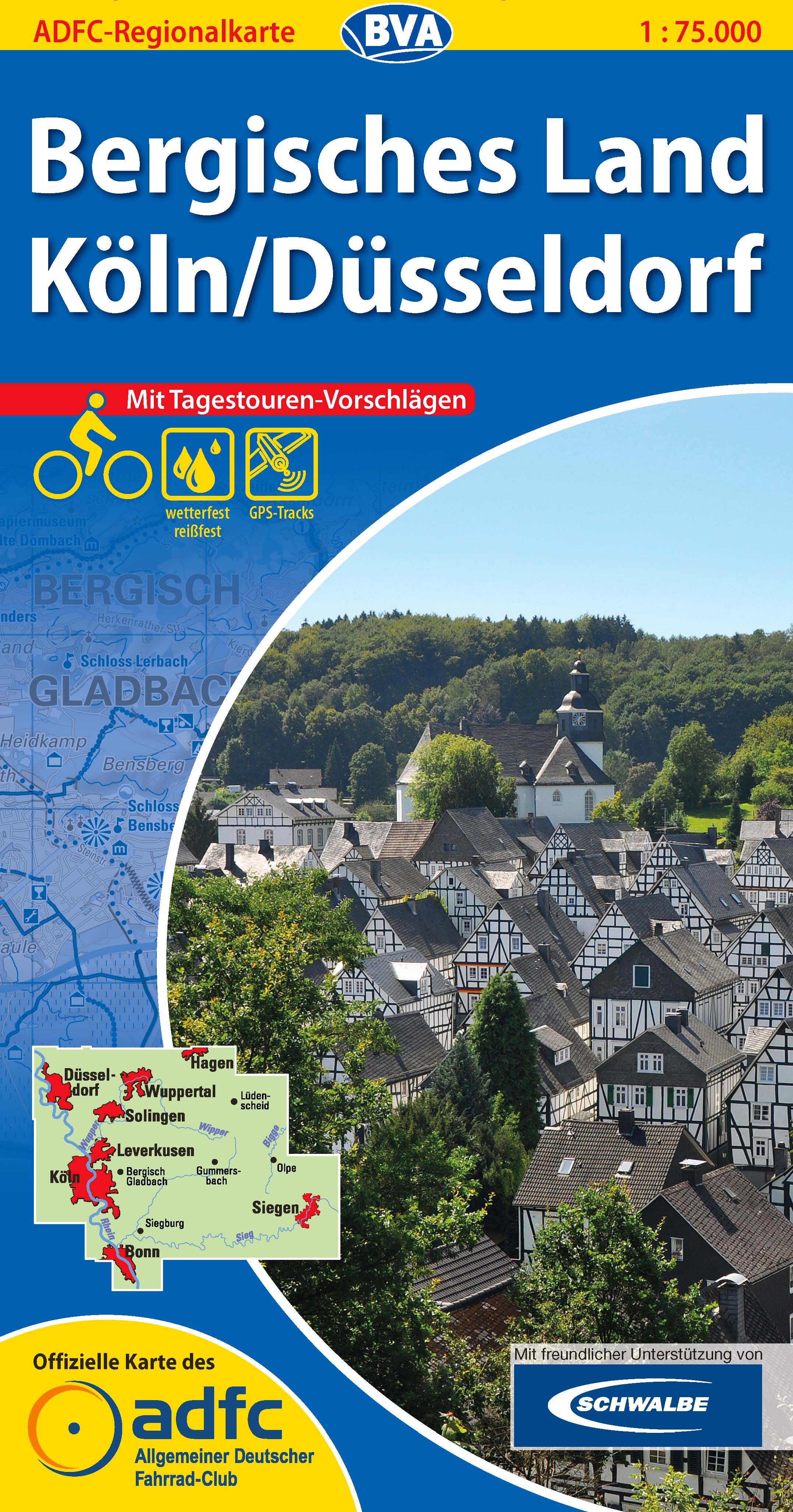Bergisches Land / Köln / Düsseldorf 1:75.000 cyklomapa ADFC