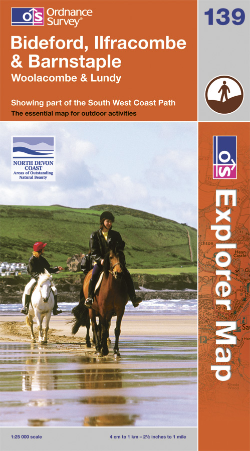 Bideford / Ilfracombe / Barnstaple 1:25.000 turistická mapa OS #139