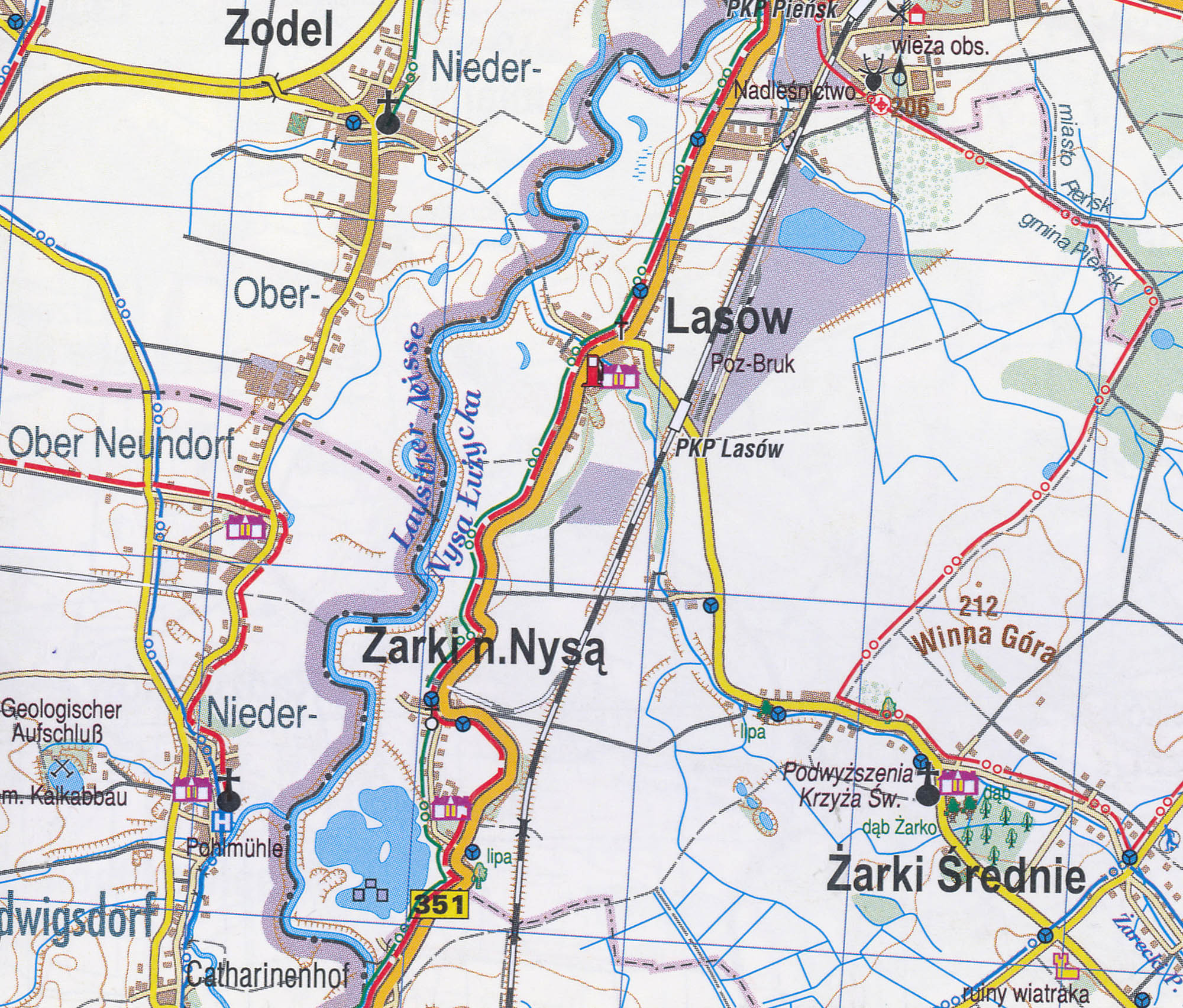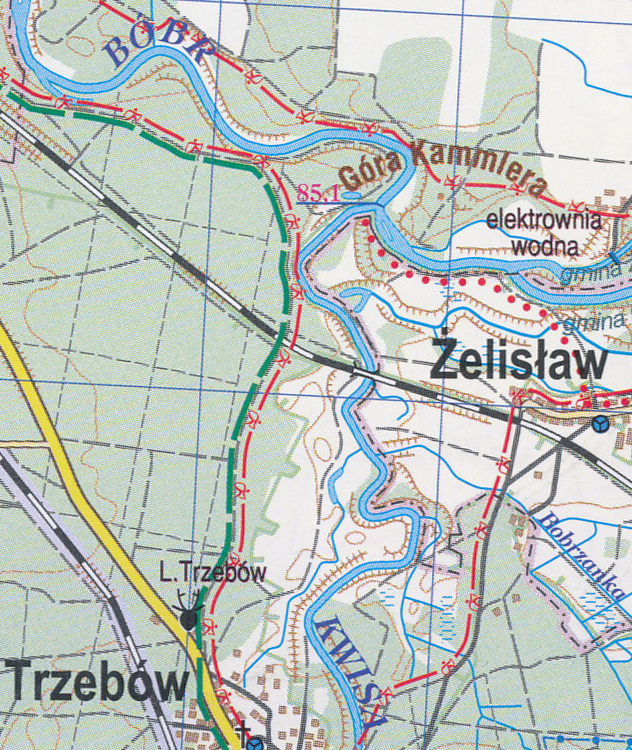 Podrobná turistická mapa zvaná Bory Dolnoslaskie v měřítku 1:75 000 pokrývá území mezi městy Boleslawiec (Bunzlau) a Zagan (Sagan) s příslušnými úseky řek Lužická Nisa (od dálnice E40 severně od Görlitz po km 66 Bahren, severně od Bad Muskau), Kwisa (od km 81 Parzyce po soutok s Bóbrem a dále po Zagan) a Bóbr (od km 150,5 Kraszowice, jižně od Boleslawiece, po Zagan).