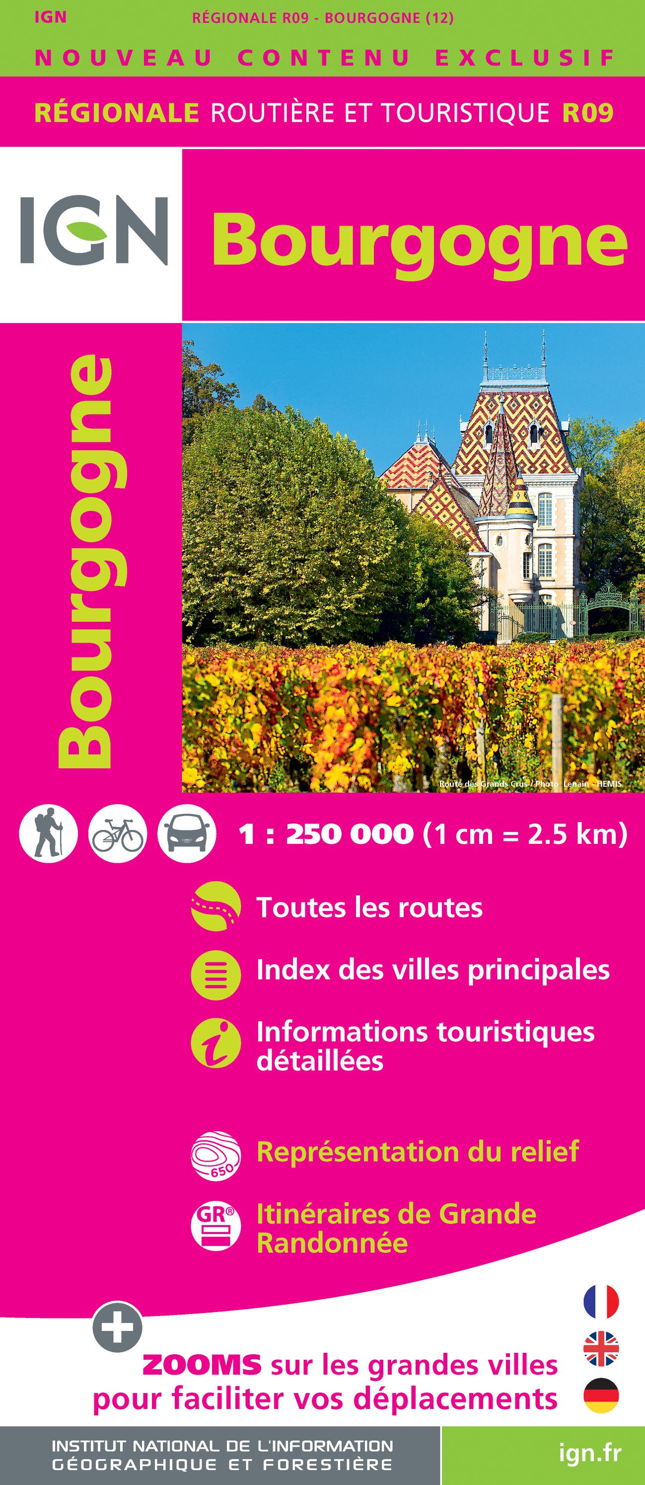 Bourgogne regionální mapa Francie v měřítku 1:250 000 IGN
