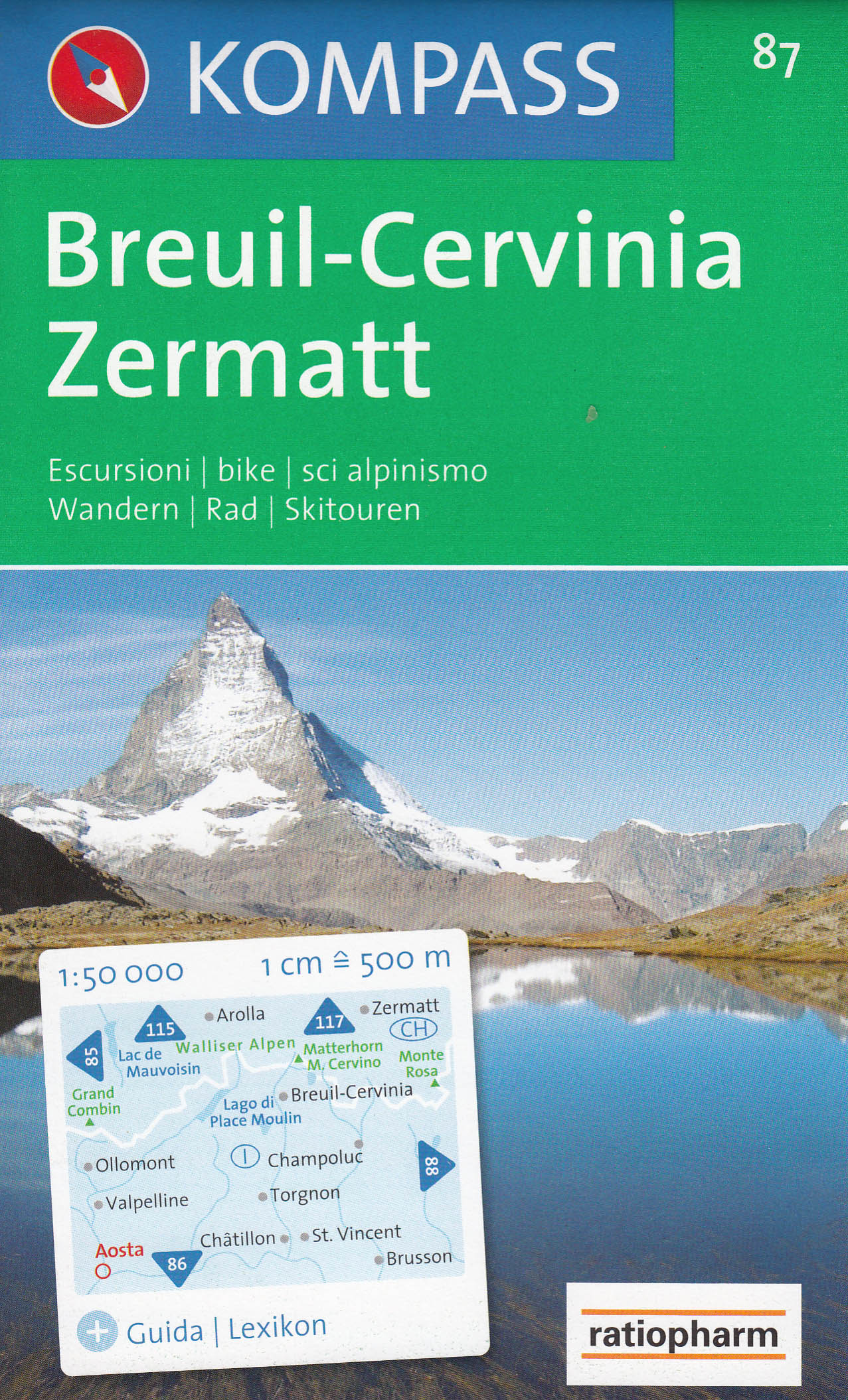 Breuil-Cervinia, Zermatt 1:50t mapa KOMPASS #87