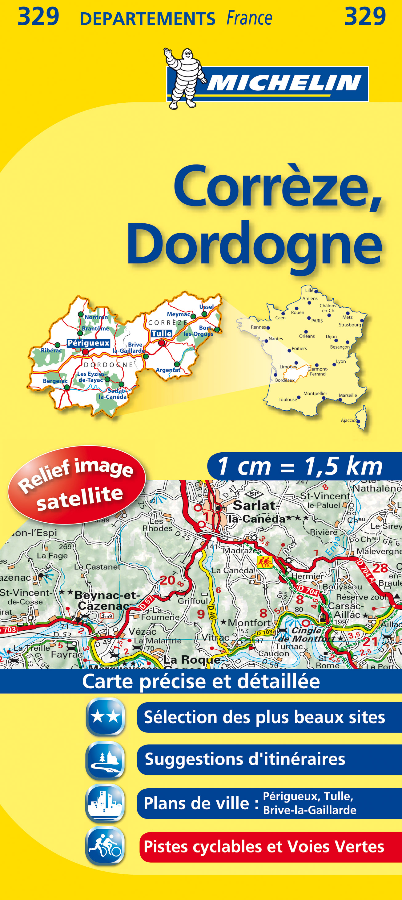 Correze, Dordogne (Francie), mapa 1:150 000, MICHELIN