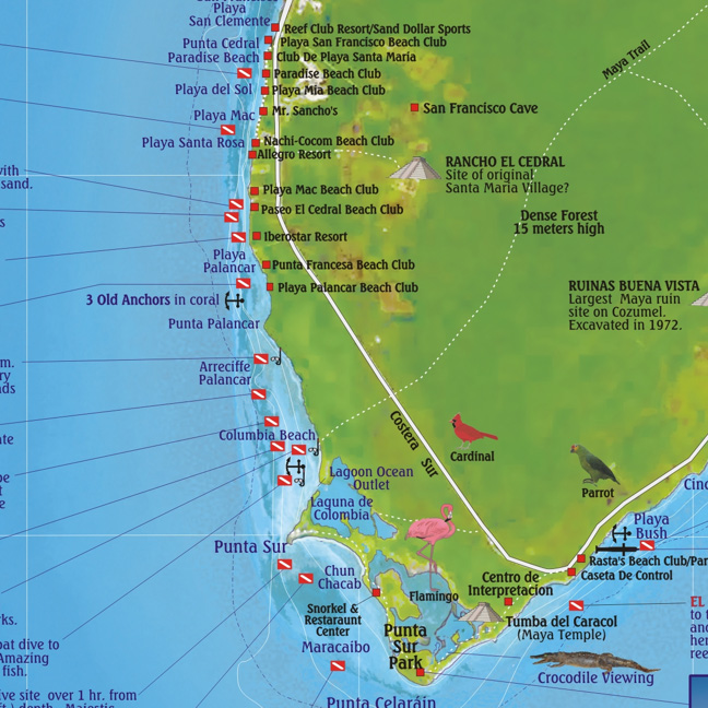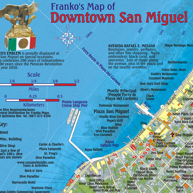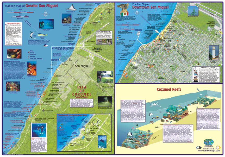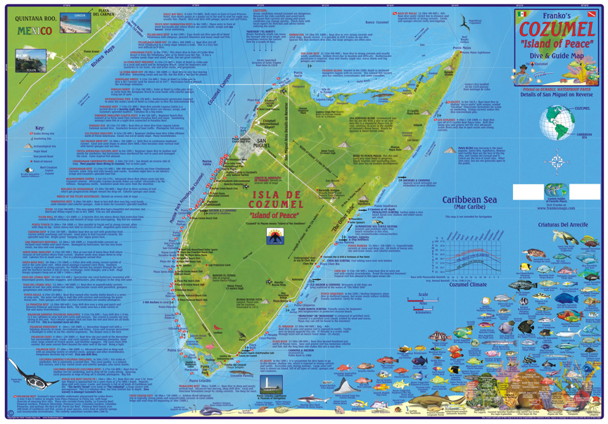 Cozumel 1:95t guide & dive mapa + St. Miguel FRANKO´S