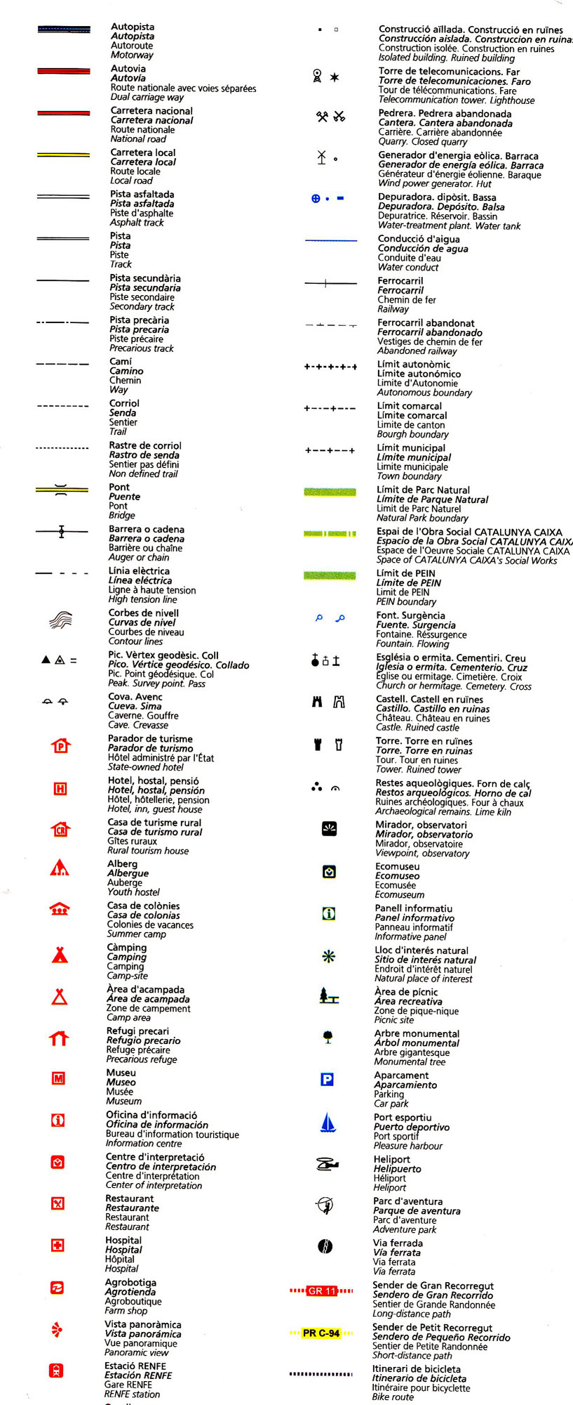 Rozsáhlá a velmi populární série pěších map od vydavatelství Alpina pokrývající Pyreneje, Katalánsko a další vybrané turistické oblasti ve Španělsku, včetně Malorky. Měřítka se pohybují od 1:50.000 do 1:10.000 - většina titulů je však v měřítku 1:25.000. Mapy mají vrstevnice, obvykle v intervalech 20 m nebo 10 m, se stínovaným reliéfem a kótami. Mapa klasicky zobrazuje turistické trasy, dálkové trasy, kempy, horské chaty, boudy, horolezecké lokality, jeskyně, trasy pro horská kola a jízdu na koni a lyžařská střediska.Všechny nejnovější verze mají UTM systém a značení zeměpisné šířky a délky v intervalu 1 ". Legenda u všech titulů zahrnuje angličtinu.Každý titul má samostatnou brožuru s obecnými informacemi o oblasti, popisy vybraných turistických tras, seznam ubytování s adresami, atd. Ne u všech titulů je to včetně angličtiny – raději se ptejte.