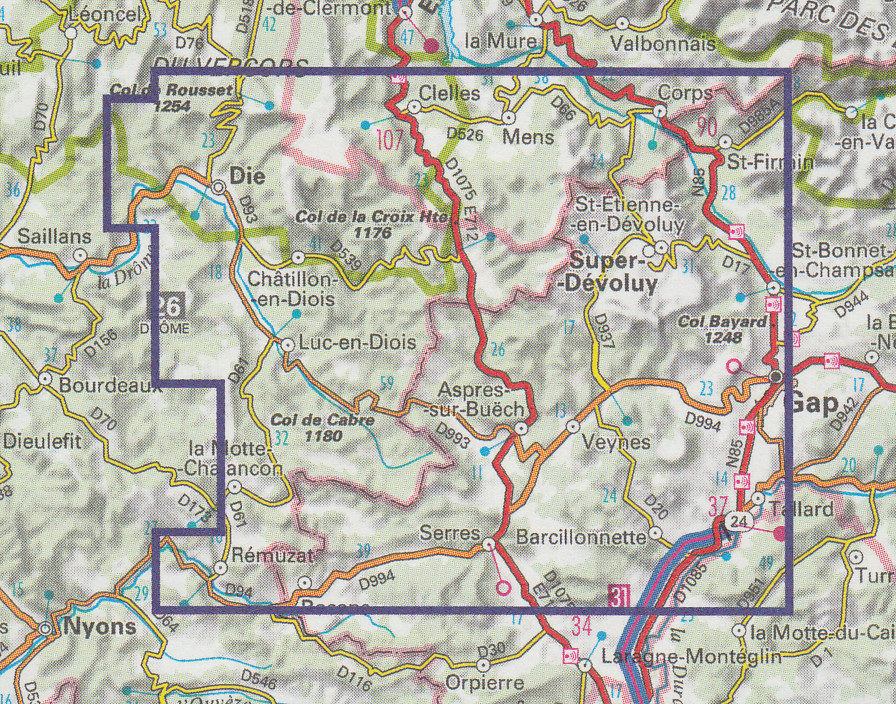 Diois, Devoluy, hte Vallée de la Drome 1:75t mapa IGN
