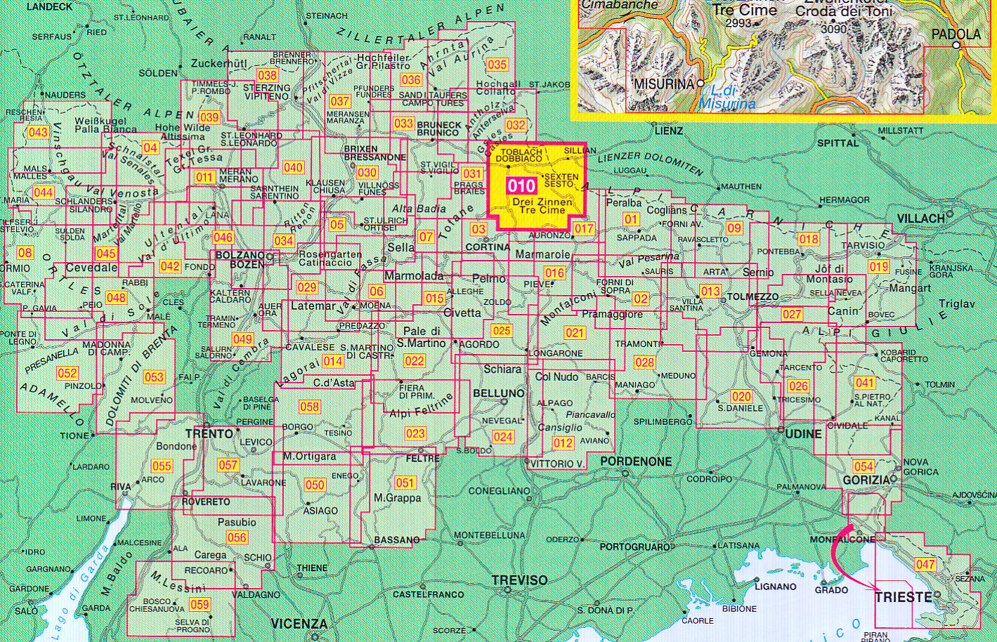 • náhled Dolomiti di Sesto 1:25 000 turistická mapa TABACCO #010