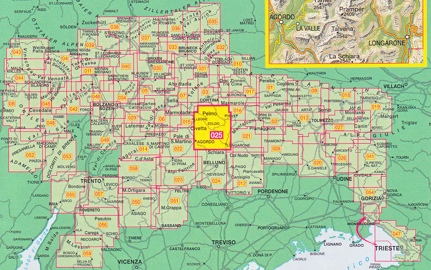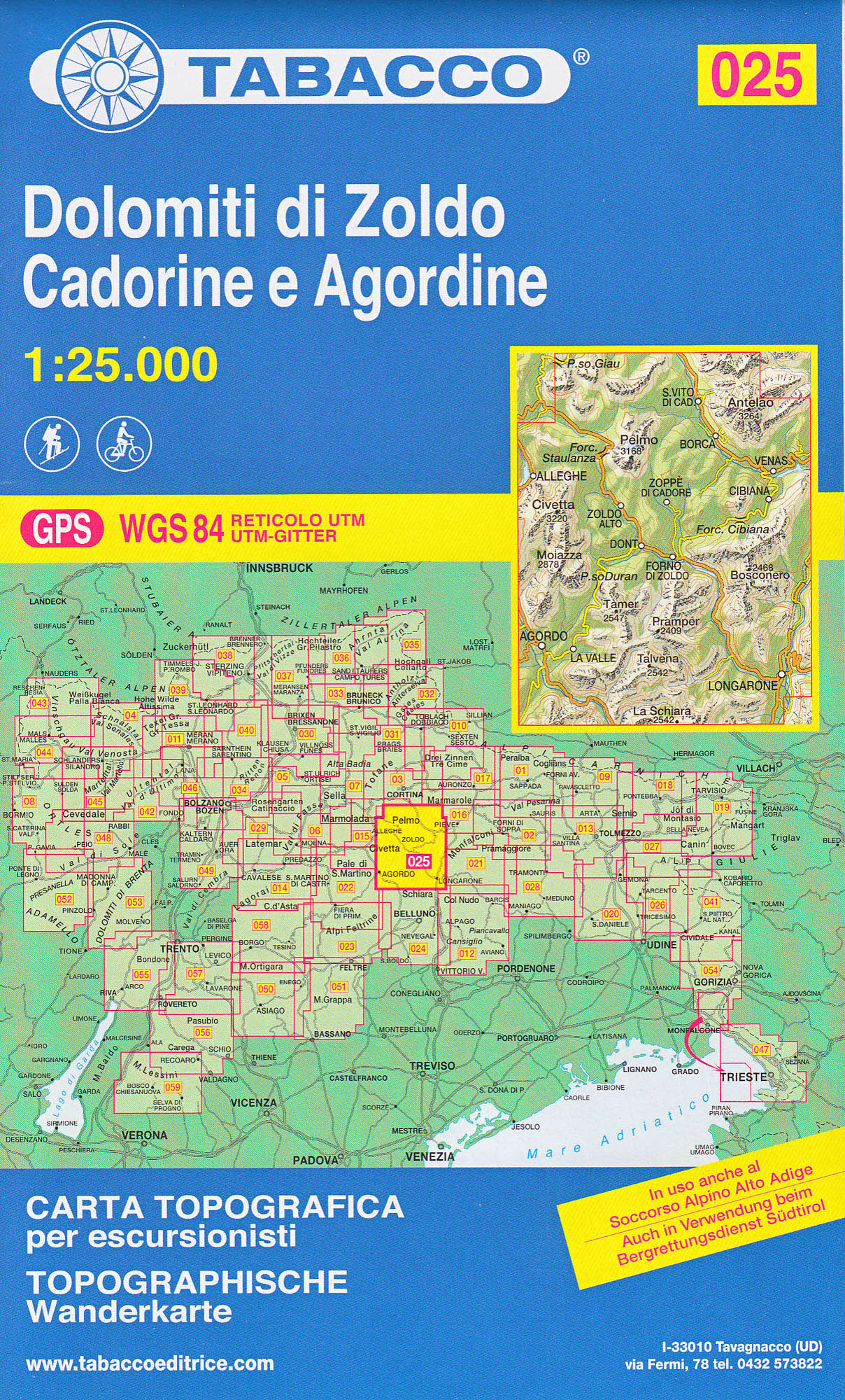 Dolomiti Di Zoldo, Cadorine e Agordine1:25 000 turistická mapa TABACCO #25