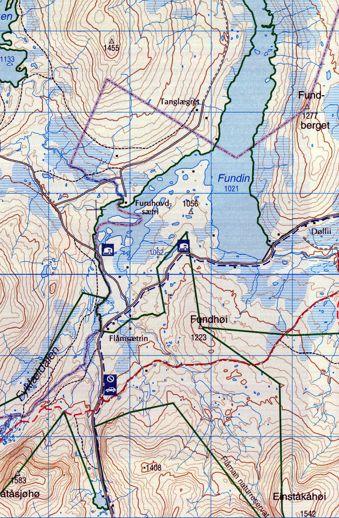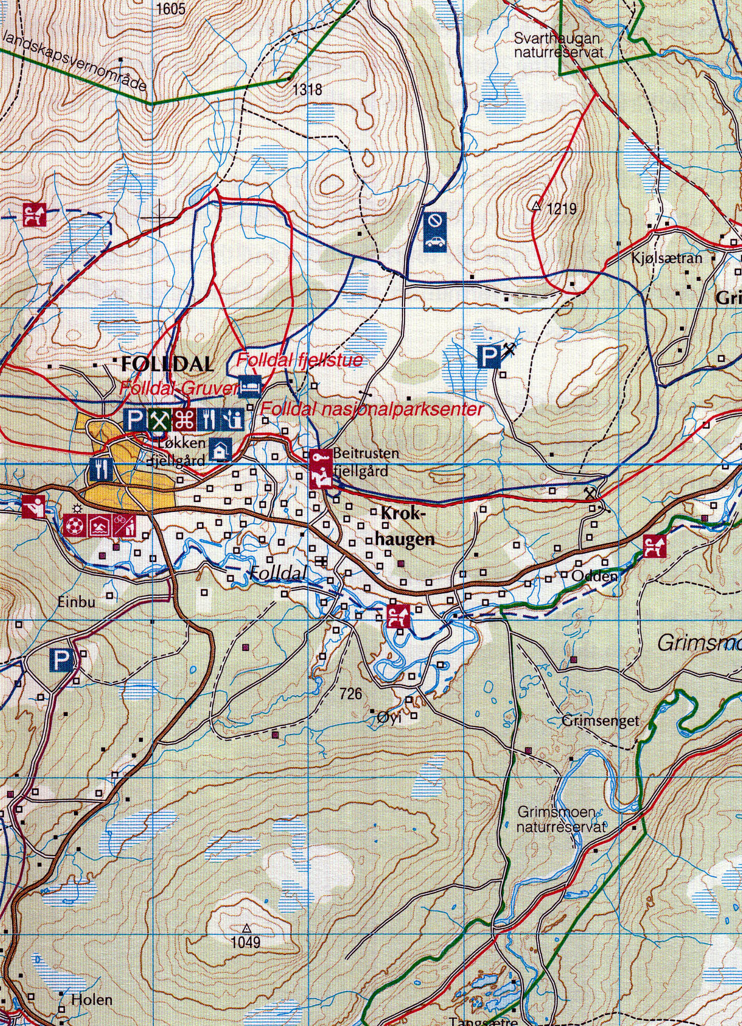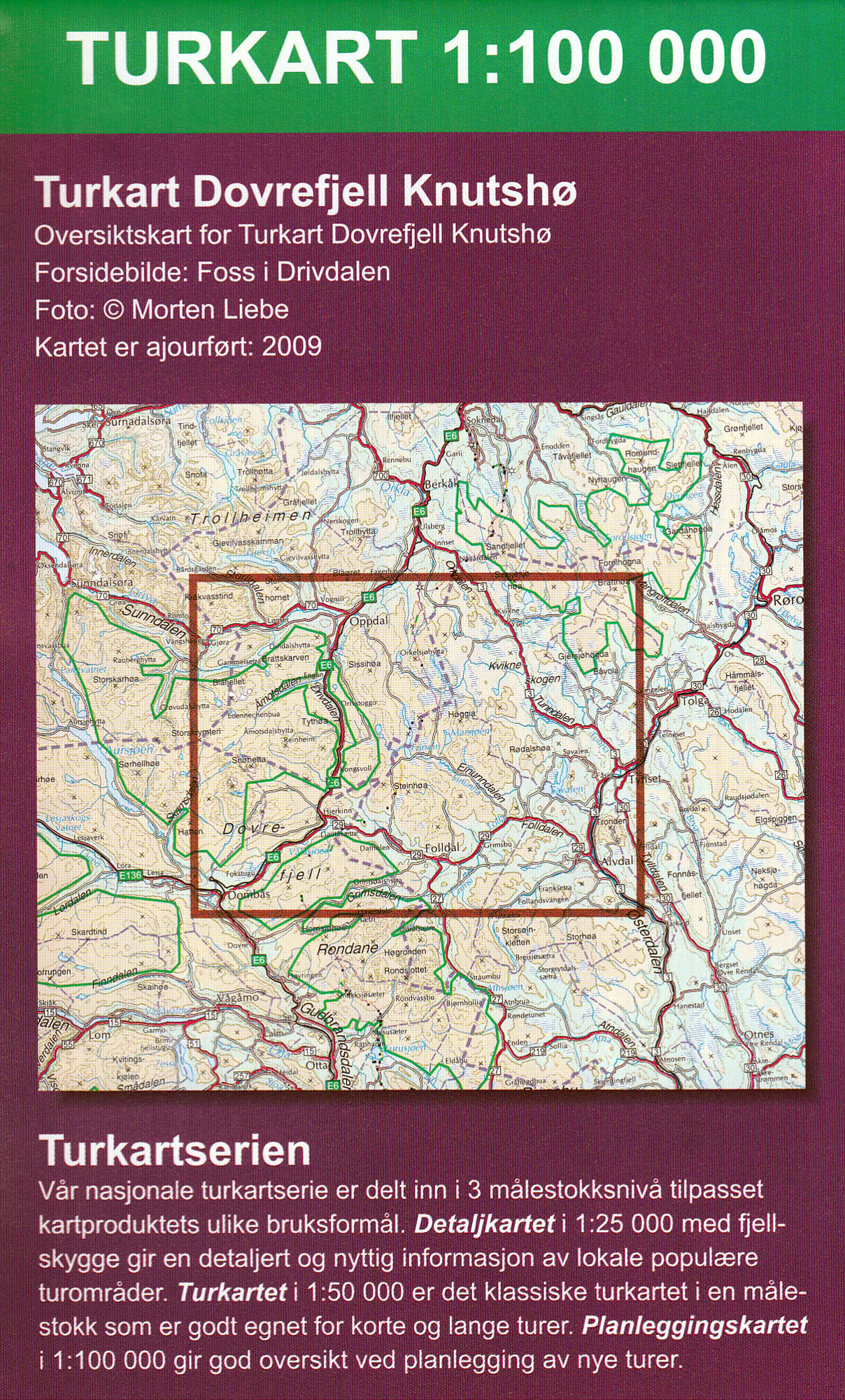 Mapa ze série GPS kompatibilních turistických map v měřítku 1:50.000/1:100.000. Vrstevnice jsou po 20m. Mapy zobrazují veškeré cesty a stezky, horské chaty a kempy, cyklistické nebo lyžařské trasy, jiné možnosti ubytování, sportovní a rekreační zařízení, sjezdovky, zajímavá místa, ledovce atd. (viz. legenda) Mapy mají UTM grid a na okrajích značenou zeměpisnou šířku a délku. Legenda mapy je norsky a anglicky. Některé tituly mají na rubové straně další turistické informace, i když ve většině případů pouze norsky. Od 1.1.2014 je doporučená maloobchodní cena těchto map na norském trhu 199,- NOK (vč. DPH 25%).