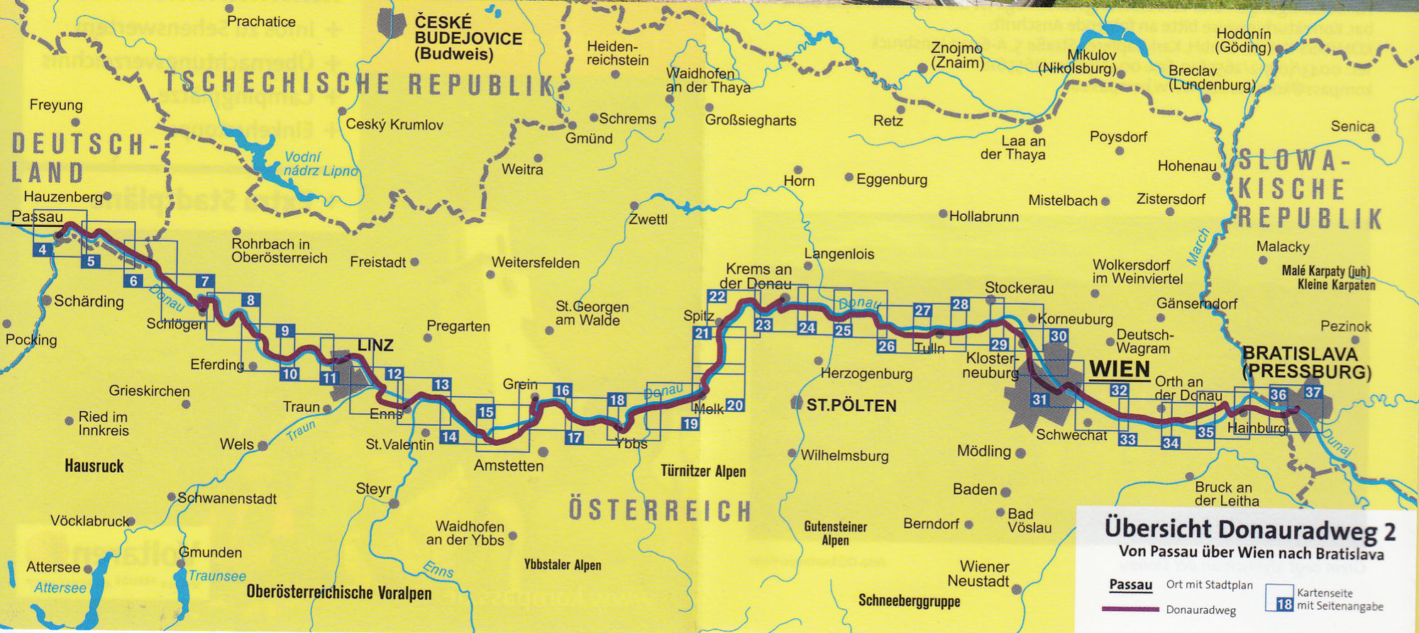 Dunajská stezka (Pasov - Bratislava) 1:50t mapa #7004 KOMPASS