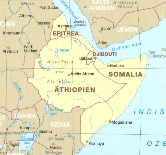 Ethiopia, Somalia, Eritrea, Djibouti 1:1,8m mapa RKH