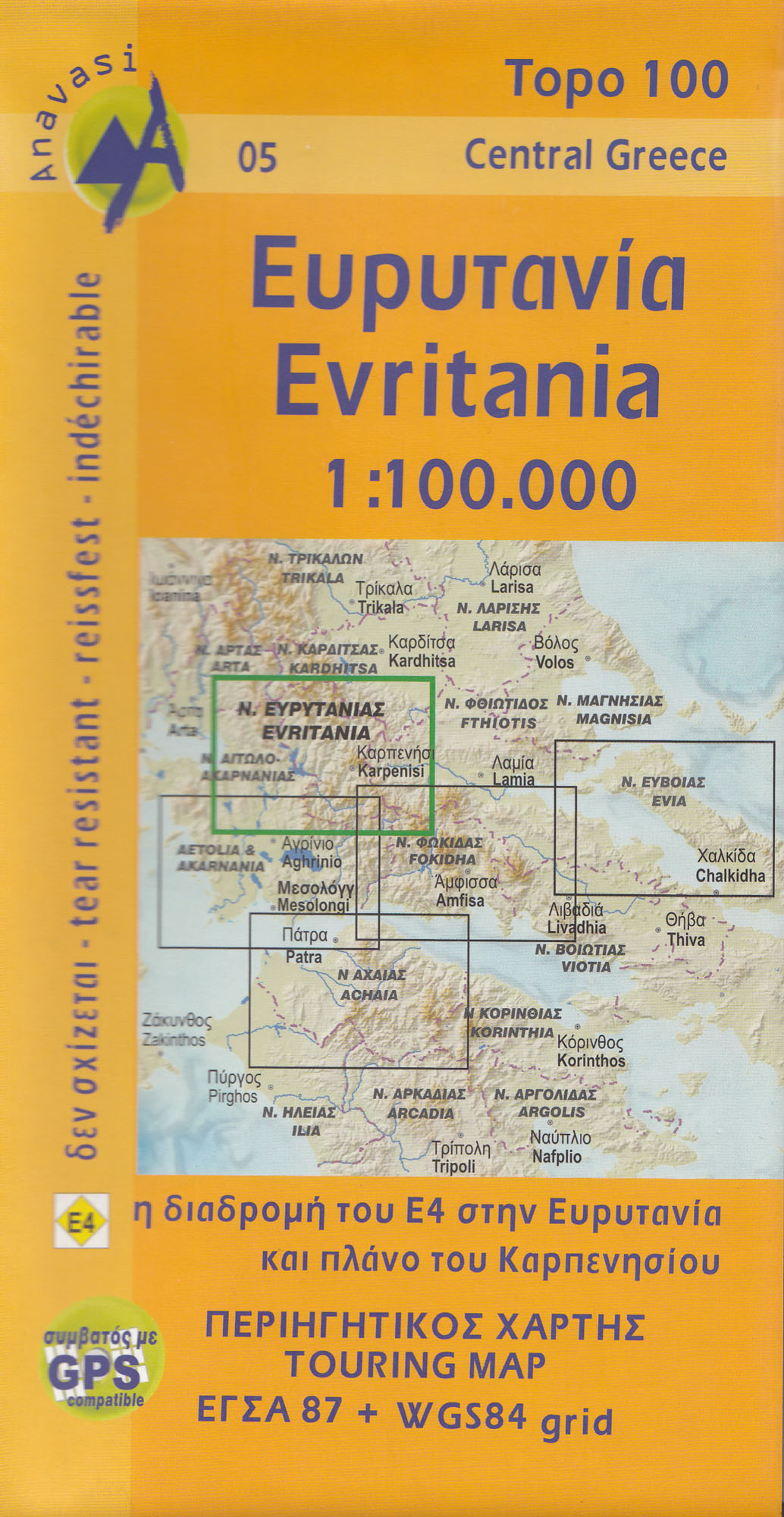Evritania (Řecko) 1:100t, cestovní mapa ANAVASI