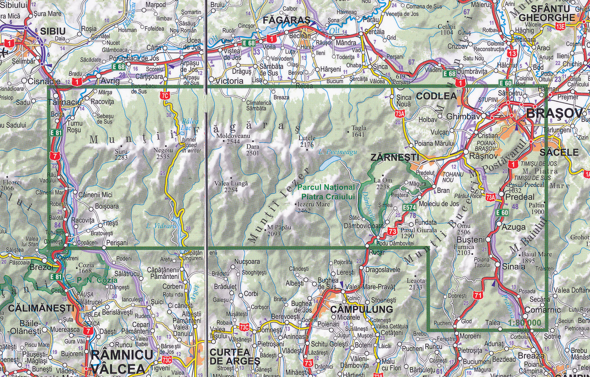 Fagaras, Bucegi, Piatra Craiului 1:80.000 turistická mapa TQ