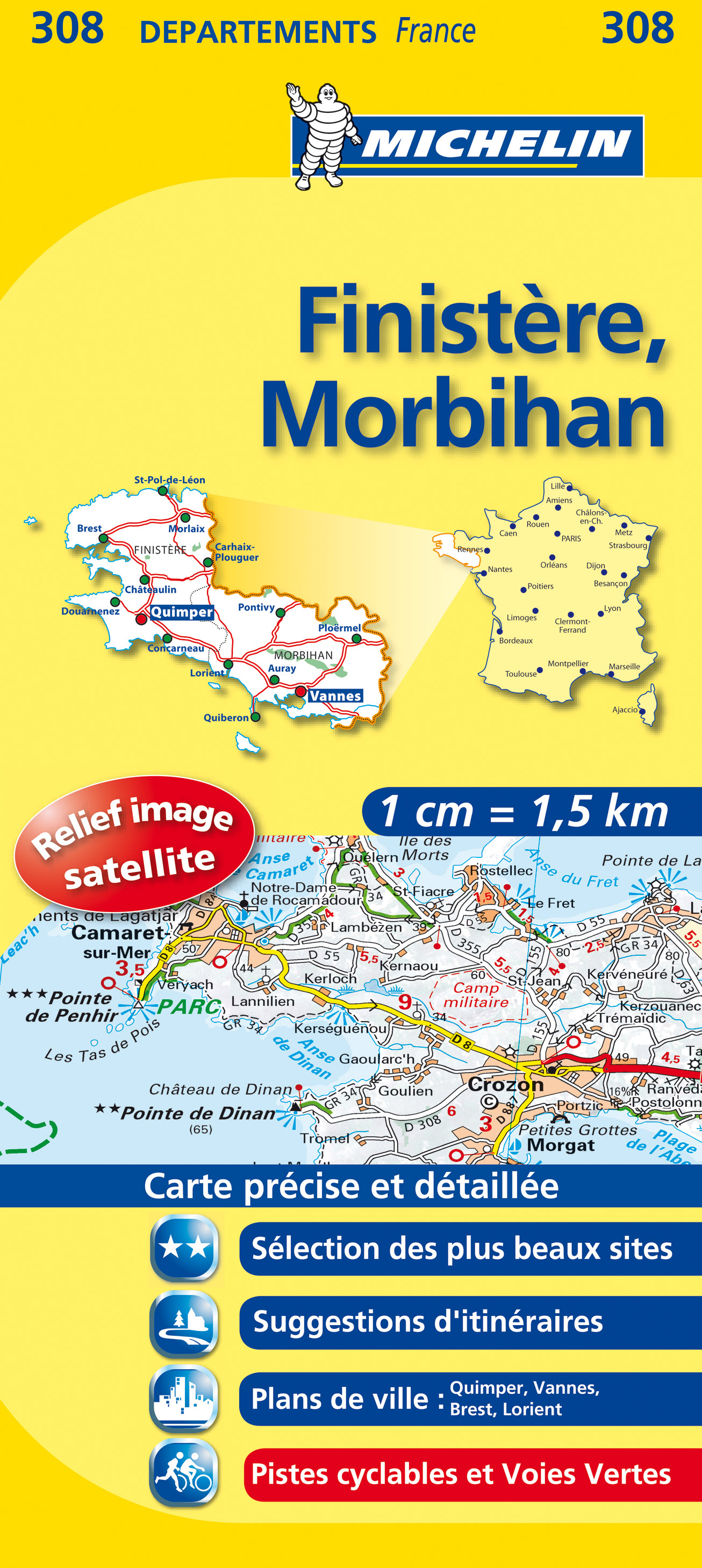 Finistere, Morbihan (Francie), mapa 1:150 000, MICHELIN