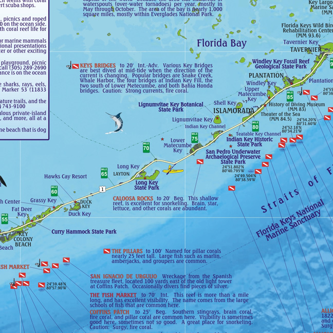 Florida Keys 1:340t guide & dive mapa + Key West FRANKO´S