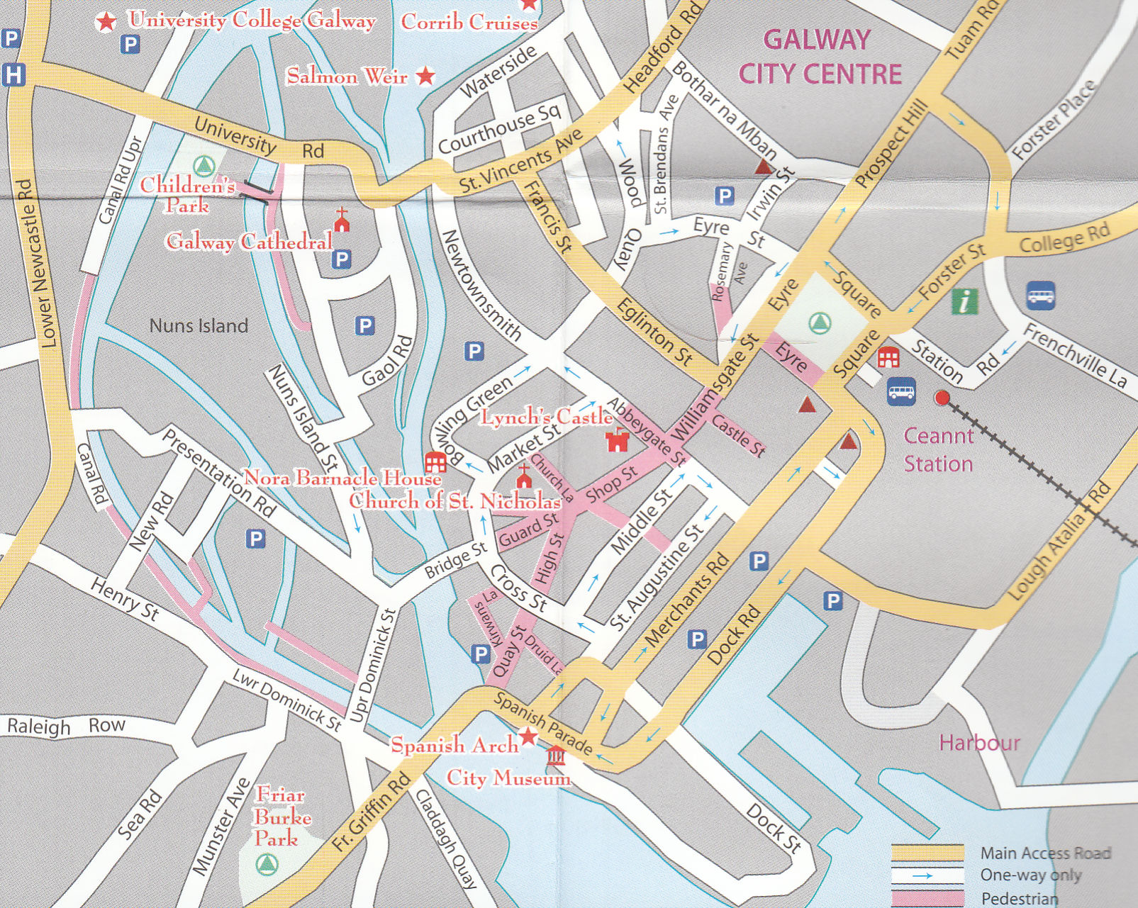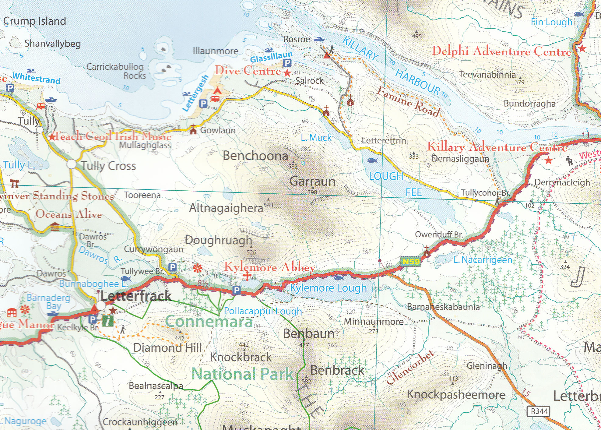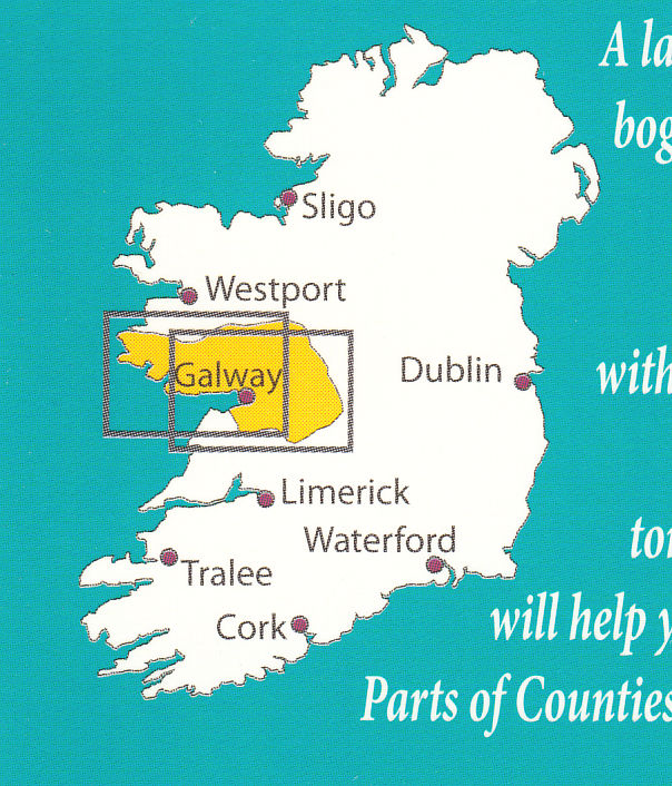 The Xploreit Map of County Galway includes all of County Galway along with parts of counties Clare, Tipperary, Offaly, Roscommon and Mayo. A lace-like Atlantic coastline enclosing shimmering lakes and rusty bogs with the majestic Twelve Bens and Maumturks is shown - and that’s just part of Connemara! Galway has a fascinating countryside containing several scenic routes and walking trails with stunning vistas and dramatic viewpoints. There are numerous castles, towers, medieval churches, historic houses, megalithic tombs and dazzling beaches just waiting to be explored. This map will help you on your way with all the information available at a glance. The scale of the Galway map is 1:100,000.