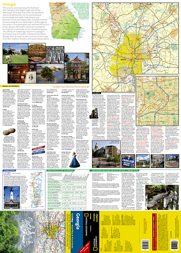 Velice detailní oboustranná mapa na syntetickém papíře odolném vodě a poškození z edice map států USA světoznámého National Geograpic Society. Mapy států od NGS kombinují obsahově klasické cestovní mapy s informacemi z průvodce. Jedna strana obsahuje cestovní mapu státu, druhá strana je doplněna o popis turisticky a historicky zajímavých míst daného regionu spolu s detailními výřezy největších měst státu.