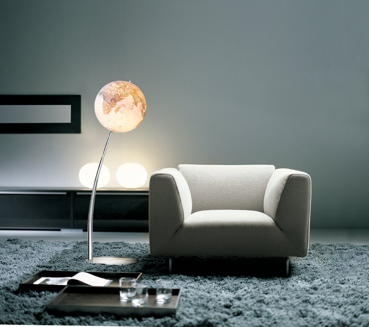 Luxusní dekorativní globus ve stylu antik a v designu National Geographic - oceány v barvě slonovinové kosti. Celkově působí velice elegantně a decentně. Podstavec je chromovaný stejně tak jako ocelová noha - celková výška 110 cm, váha 10 kg. Globus je stylovým doplňkem každého moderního interiéru a může posloužit i jako decentní přisvícení místnosti. Popis v anglickém jazyce. K výrobku je přiložen návod na výměnu žárovky. Náhradní žárovka není součástí balení a je běžně dostupná v obchodní síti, elektrický přívod vedený nohou, takže není vidět.