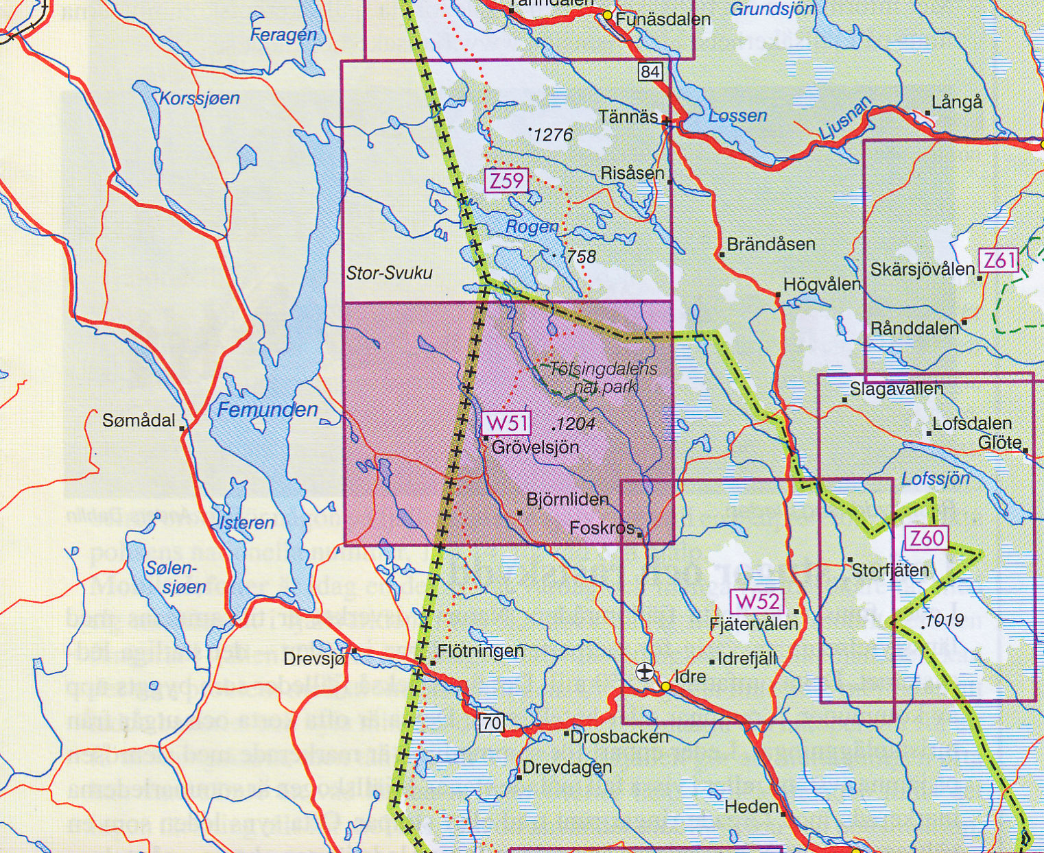 Turistická mapa ze série podrobných topografických map horských oblastí středního a severního Švédska. Vrstevnice jsou zobrazeny v intervalu 20 m a celý reliéf je opatřen stínováním. V mapě naleznete vyznačené trasy pro pěší turistiku a běžecké lyžování, trasy určené pro jízdu na sněžném skůtru, kempy, ubytovny a ostatní druhy ubytování atd. Každý list pokrývá oblast přibližně 80 x 80 km, nebo větší. Mapy obsahují UTM souřadnice a souřadnice zeměpisné šířky a délky po 10'. Legenda mapy je také v angličtině a popisy oblasti na rubu mapy pouze ve švédštině. Některé z listů navíc obsahují stručné poznámky v angličtině ohledně zón s omezeným vstupem.