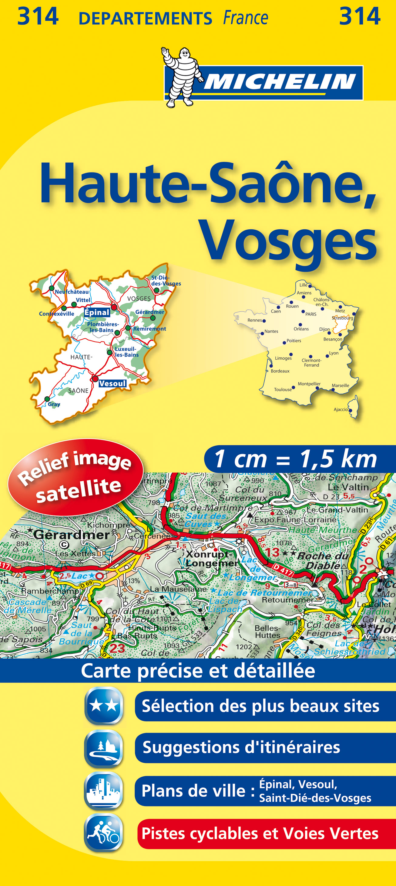 Haute-Saône, Vosges (Francie), mapa 1:150 000, MICHELIN