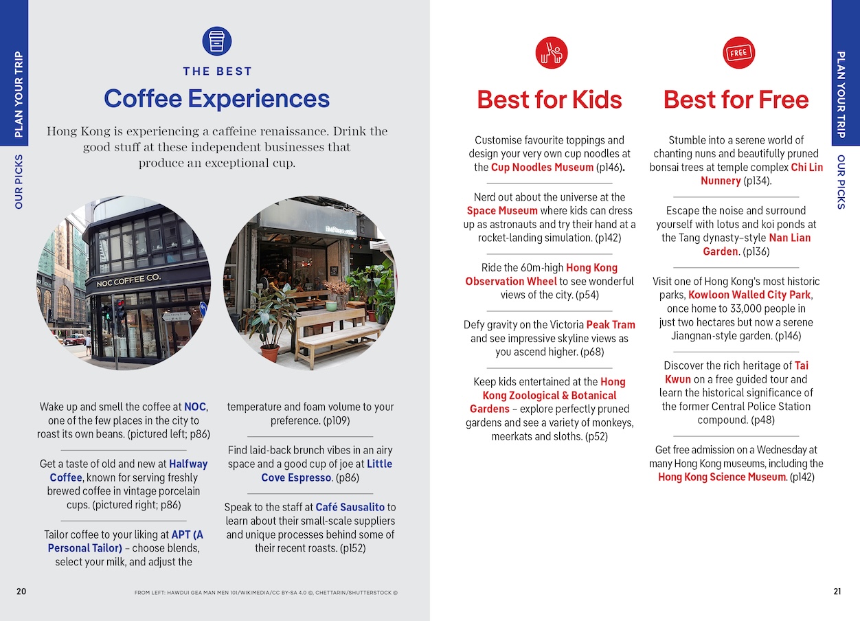 Make quick travel decisions using 'Trip Planning' pages that include top pick lists and tips about what to book in advance