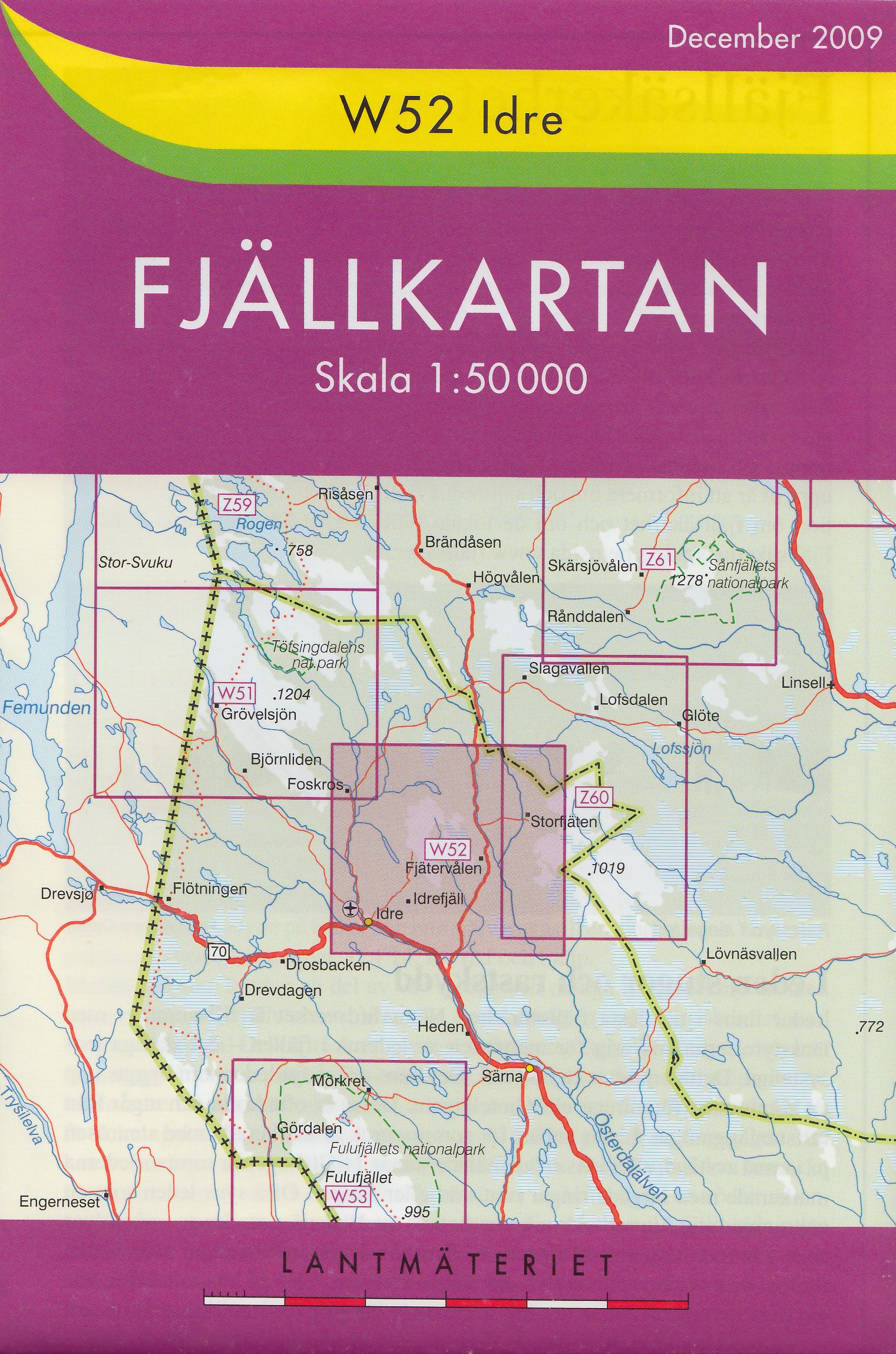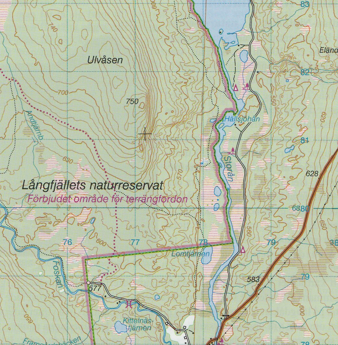 Turistická mapa ze série podrobných topografických map horských oblastí středního a severního Švédska. Vrstevnice jsou zobrazeny v intervalu 20 m a celý reliéf je opatřen stínováním. V mapě naleznete vyznačené trasy pro pěší turistiku a běžecké lyžování, trasy určené pro jízdu na sněžném skůtru, kempy, ubytovny a ostatní druhy ubytování atd. Každý list pokrývá oblast přibližně 80 x 80 km, nebo větší. Mapy obsahují UTM souřadnice a souřadnice zeměpisné šířky a délky po 10'. Legenda mapy je také v angličtině a popisy oblasti na rubu mapy pouze ve švédštině. Některé z listů navíc obsahují stručné poznámky v angličtině ohledně zón s omezeným vstupem.