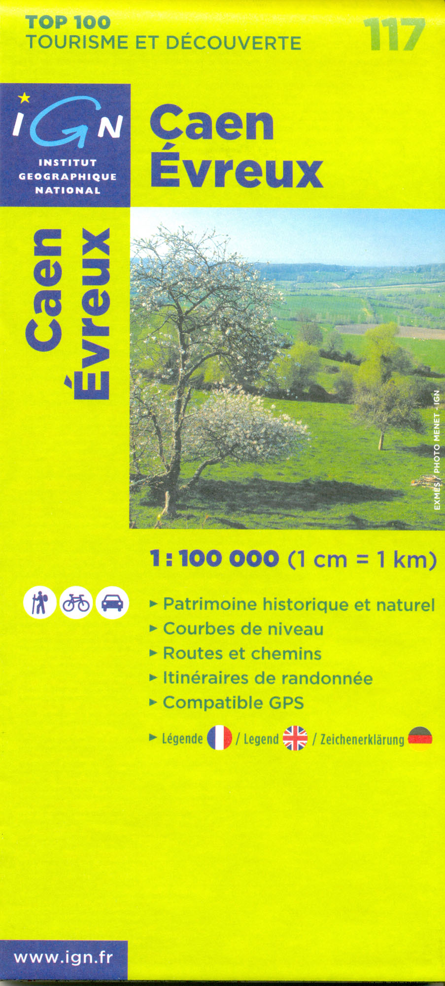 IGN 117 Caen, Evreux 1:100t mapa IGN