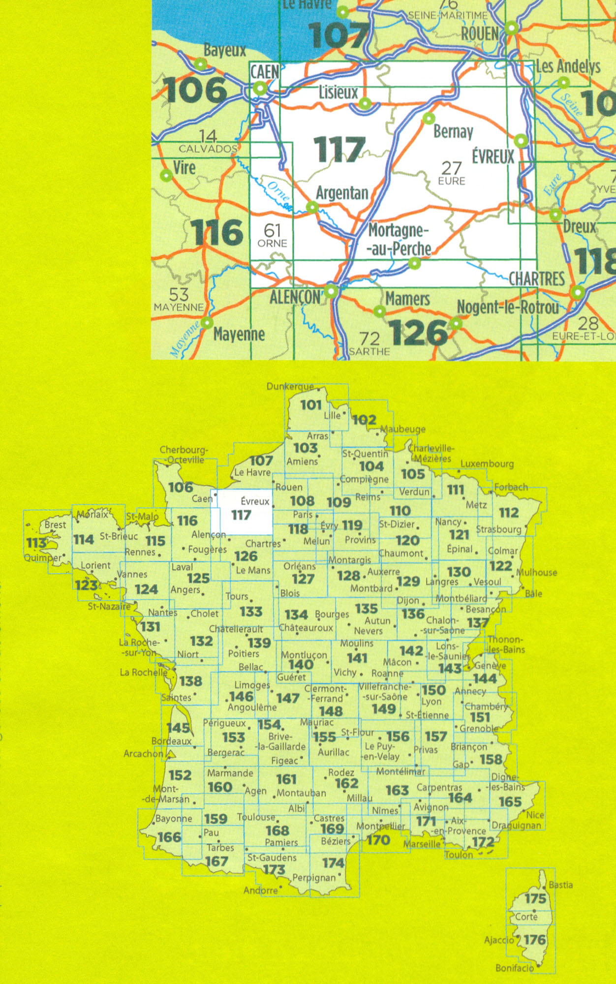 • náhled IGN 117 Caen, Evreux 1:100t mapa IGN