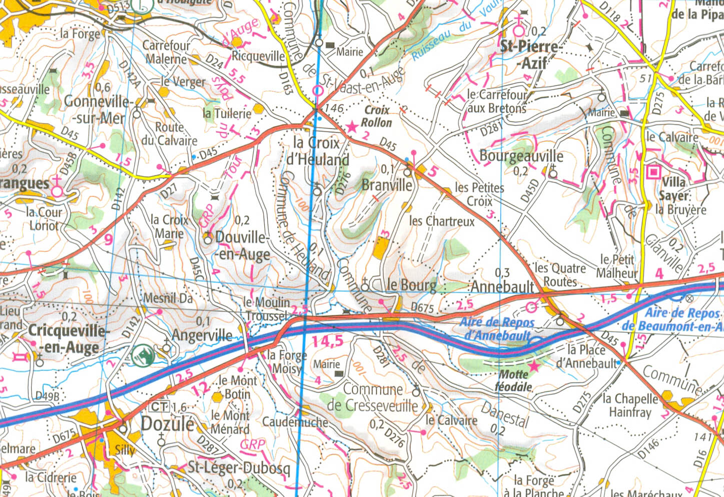 Mapa ze série TOP100 cykloturistických map Francie od Institut Géographique National (IGN), výjimečně detailní stínované mapy, ideální pro objevování francouzského venkova autem, na kole, nebo dokonce pěšky. Používána miliony místních turistů, série nabízí vynikající rovnováhu mezi pokrytím dostatečně velké oblasti a detailním zobrazením. V únoru 2010 tato série (dříve známá jako série Verte) prošla kompletní revizí a poskytuje tak ještě přesnější zobrazení místních komunikací a nově zahrnuje GPS souřadnice. Interval vrstevnic se liší v závislosti na terénu od 10 metrů podél pobřeží do hloubky až po 40 metrů v horských oblastech. Zbarvení mapy ukazuje různé typy vegetace a půdní využití (lesy, vinice, ovocné sady, atd.). Mapy mají 5 km UTM pro uživatele GPS plus značení zeměpisné šířky a délky v 15' intervalech. Obsahují mnoho turistických informací -značené stezky, GR trasy, různé zajímavosti, sportovní a rekreační zařízení, horské boudy, Gîtes d'etape, vrcholy, ledovce, průsmyky, názvy hor, železnice se stanicemi, lanovky, vleky, administrativní hranice, atd. Legenda obsahuje angličtinu.