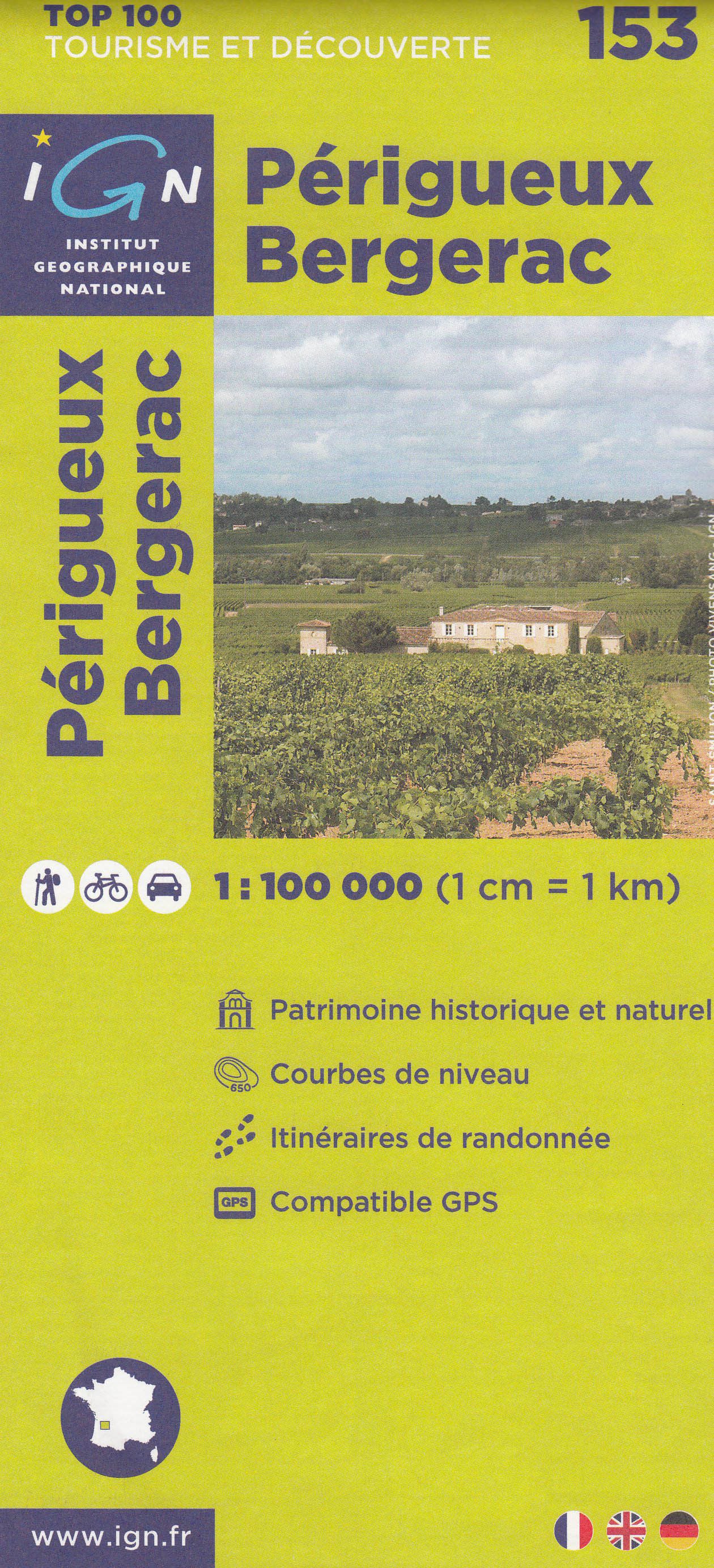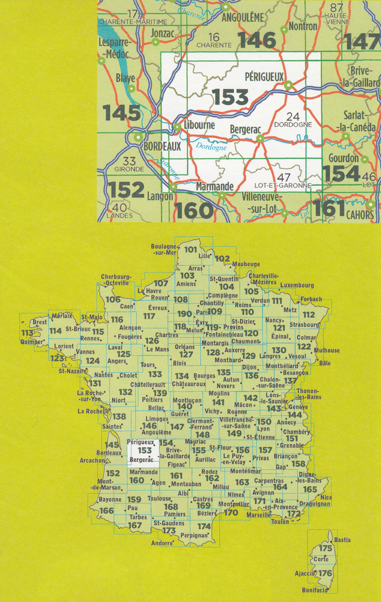 IGN 153 Périgueux, Bergerac 1:100t mapa IGN