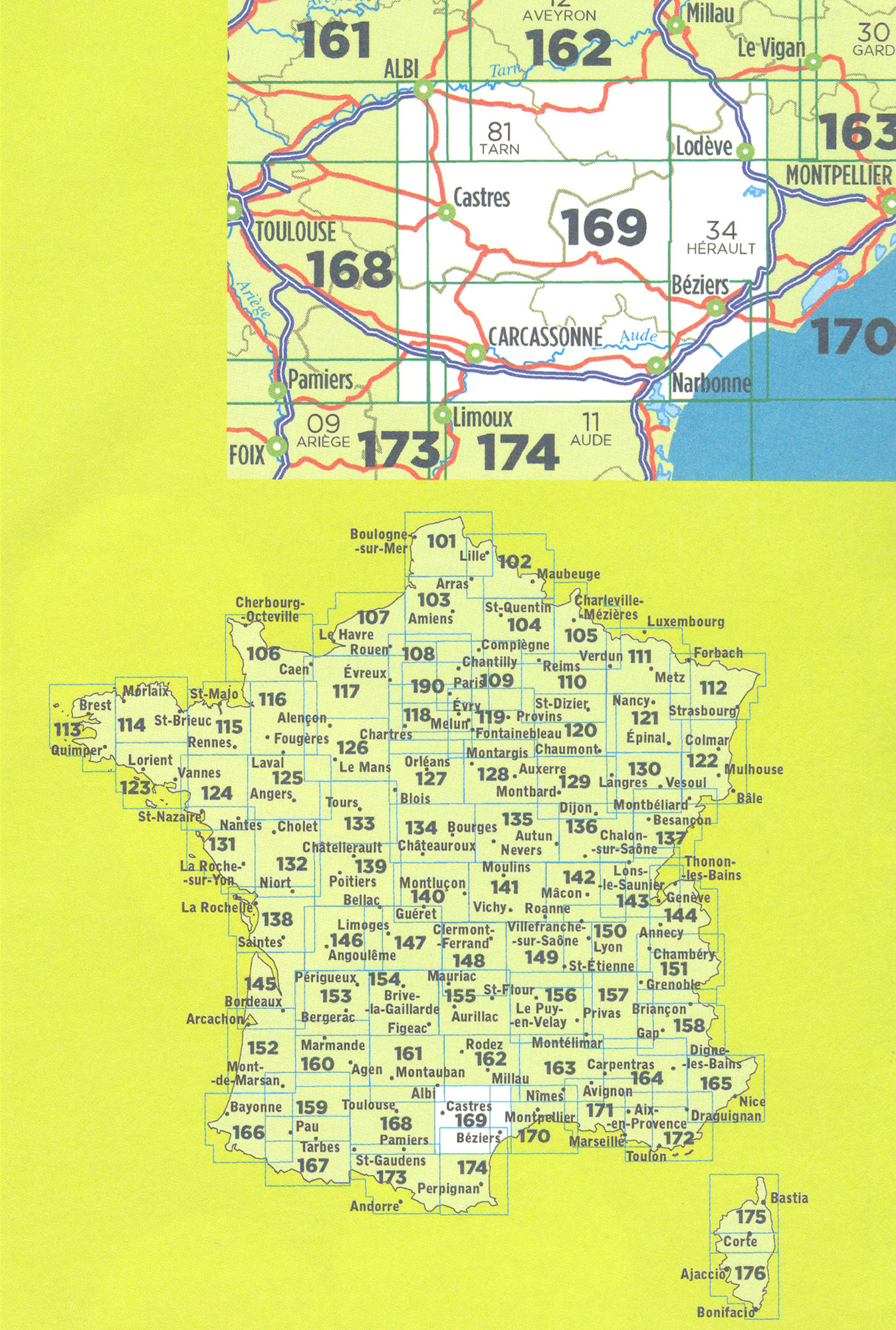 IGN 169 Béziers / Castres 1:100t mapa IGN
