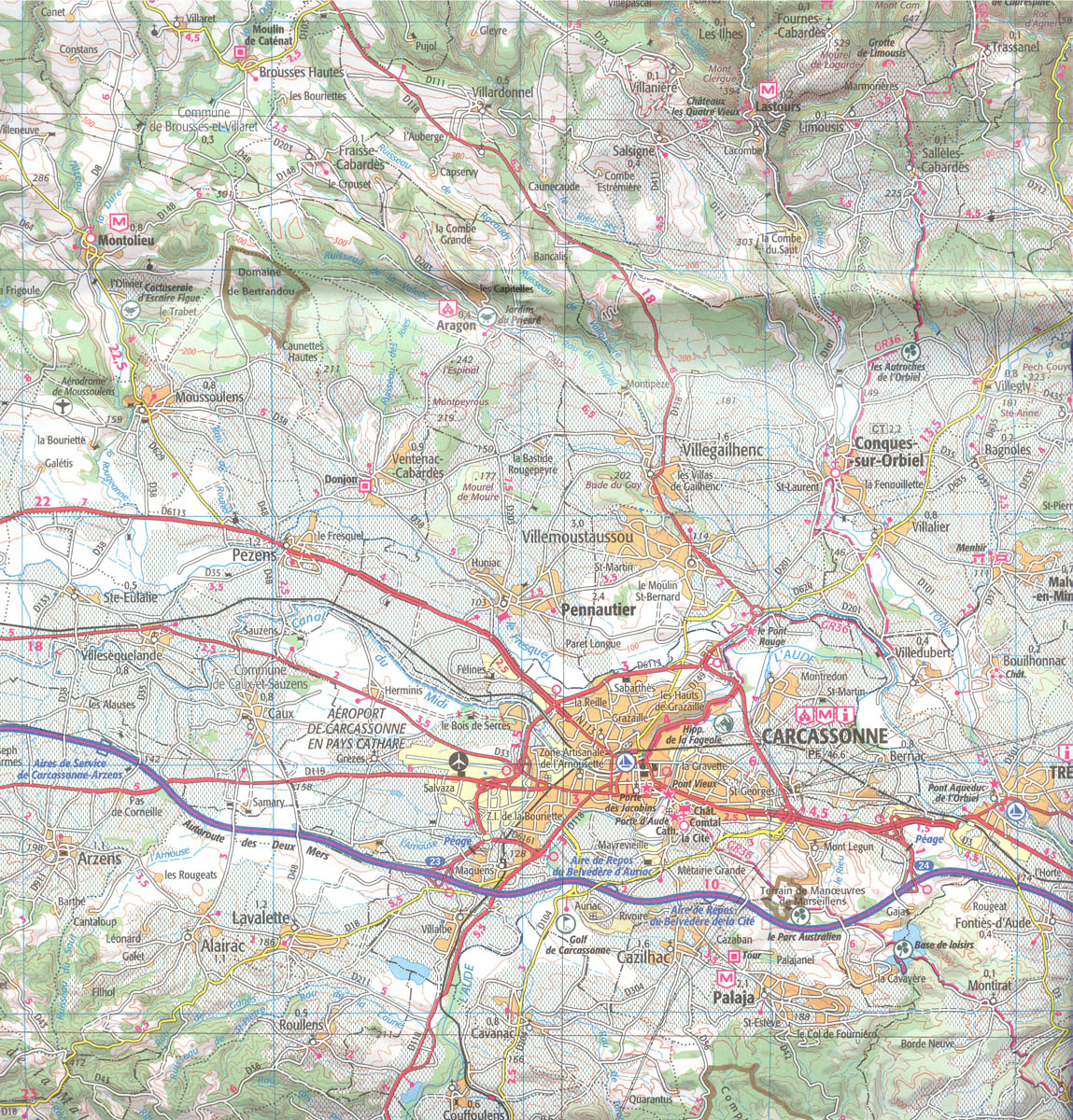 Mapa ze série TOP100 cykloturistických map Francie od Institut Géographique National (IGN), výjimečně detailní stínované mapy, ideální pro objevování francouzského venkova autem, na kole, nebo dokonce pěšky. Používána miliony místních turistů, série nabízí vynikající rovnováhu mezi pokrytím dostatečně velké oblasti a detailním zobrazením. V únoru 2010 tato série (dříve známá jako série Verte) prošla kompletní revizí a poskytuje tak ještě přesnější zobrazení místních komunikací a nově zahrnuje GPS souřadnice. Interval vrstevnic se liší v závislosti na terénu od 10 metrů podél pobřeží do hloubky až po 40 metrů v horských oblastech. Zbarvení mapy ukazuje různé typy vegetace a půdní využití (lesy, vinice, ovocné sady, atd.). Mapy mají 5 km UTM pro uživatele GPS plus značení zeměpisné šířky a délky v 15' intervalech. Obsahují mnoho turistických informací -značené stezky, GR trasy, různé zajímavosti, sportovní a rekreační zařízení, horské boudy, Gîtes d'etape, vrcholy, ledovce, průsmyky, názvy hor, železnice se stanicemi, lanovky, vleky, administrativní hranice, atd. Legenda obsahuje angličtinu.
