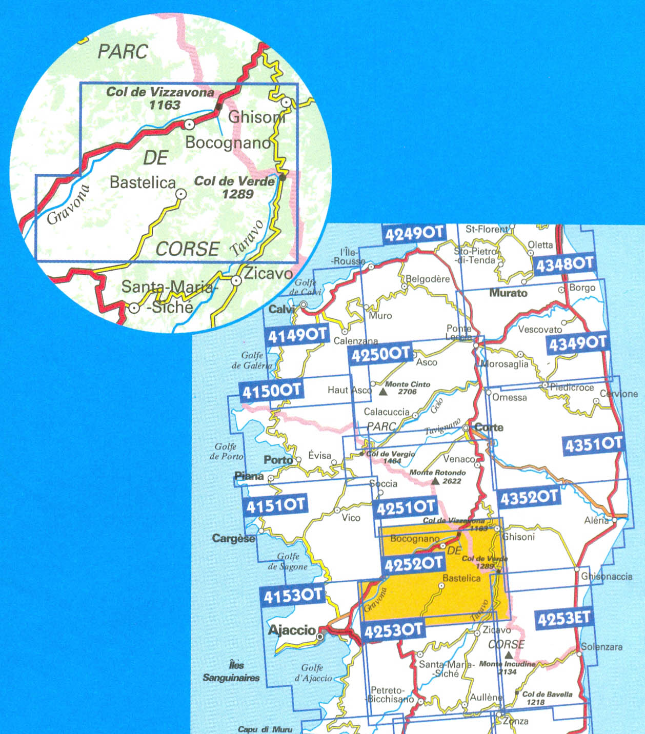 IGN 4252 OT Monte Renoso / Bastelica / PNR de Corse 1:25t mapa IGN