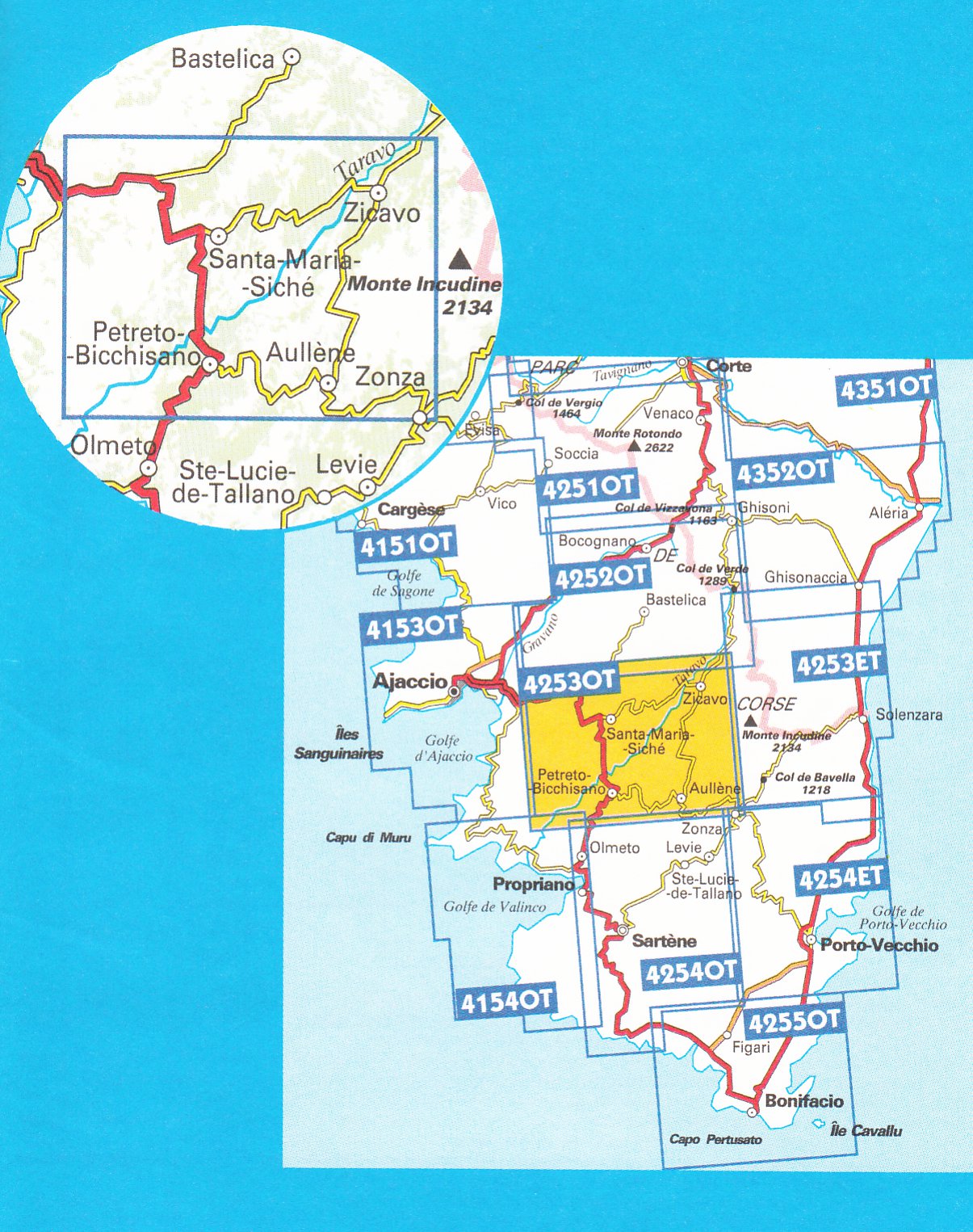 IGN 4253 OT Petreto-Bicchisano / Zicavo / PNR de Corse 1:25t mapa IGN
