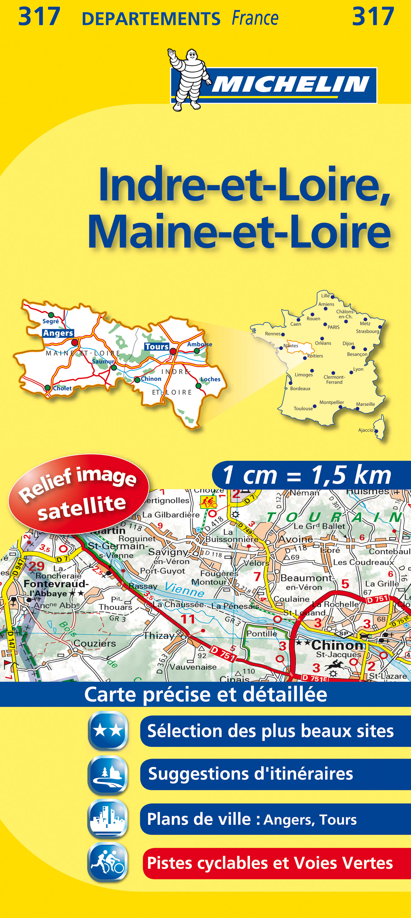 Indre-et-Loire, Maine-et-Loire (Francie), mapa 1:150 000, MICHELIN