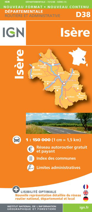 Isere departement 1:150.000 mapa IGN