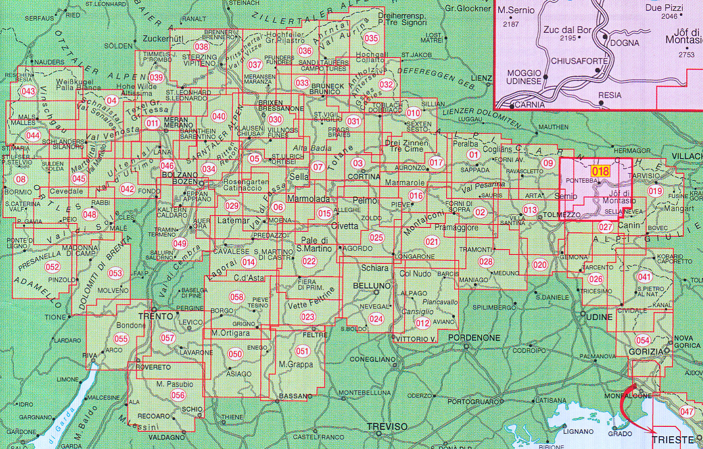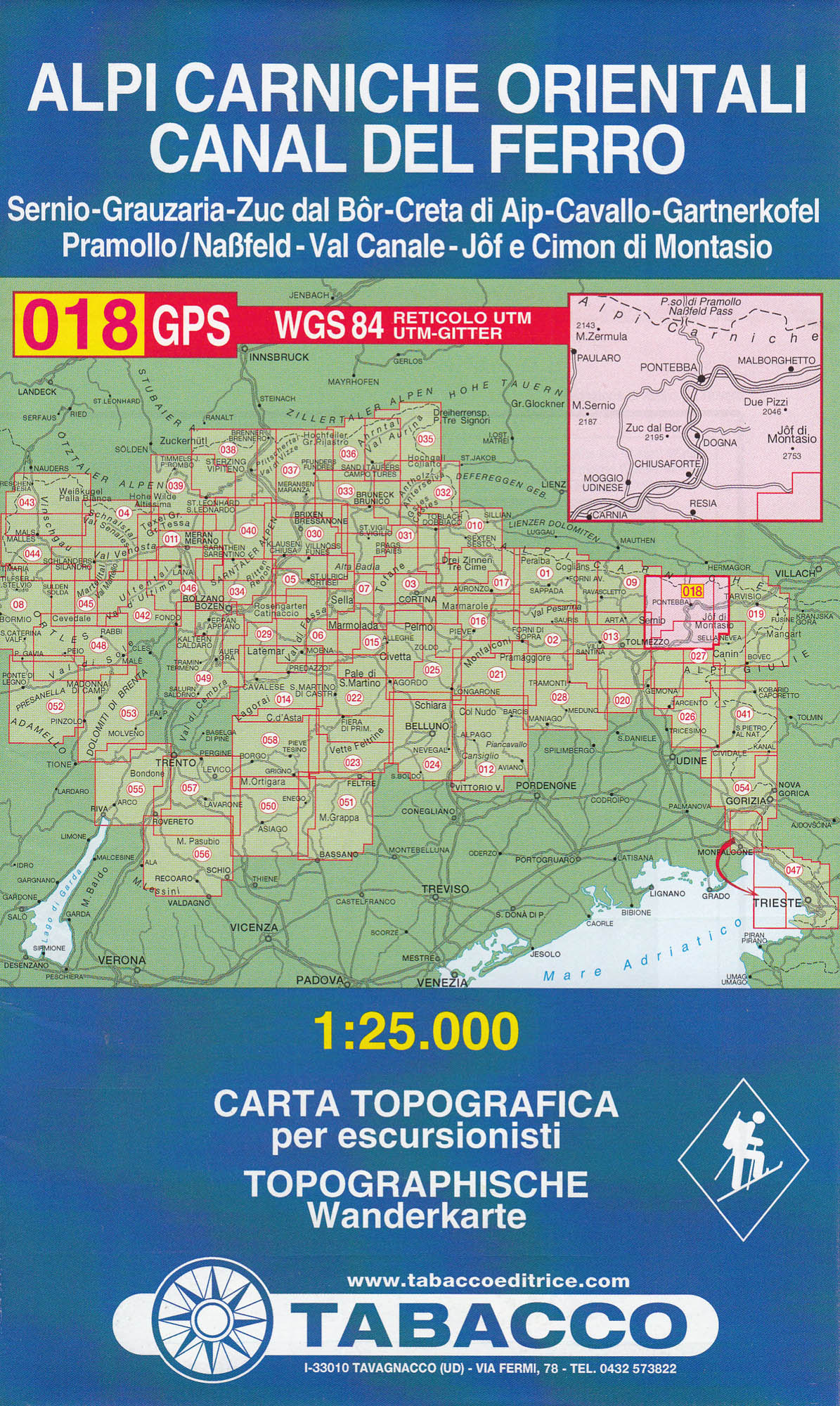 Karnské Alpy východ, Canal del Ferro 1:25 000 turistická mapa TABACCO #018