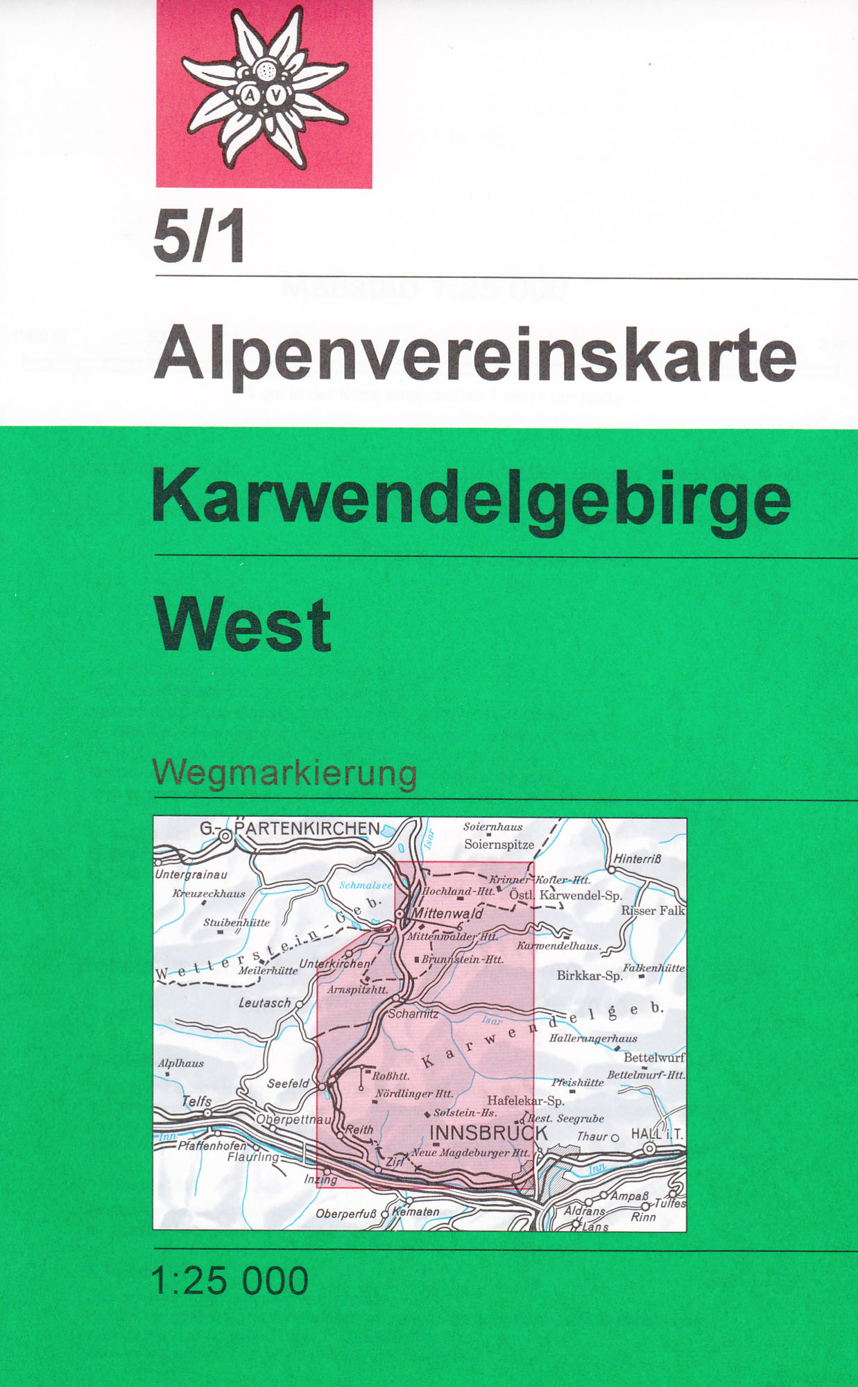 Karwendelgebirge Západ 1:25 000, turistická mapa, Alpenverein #5/1