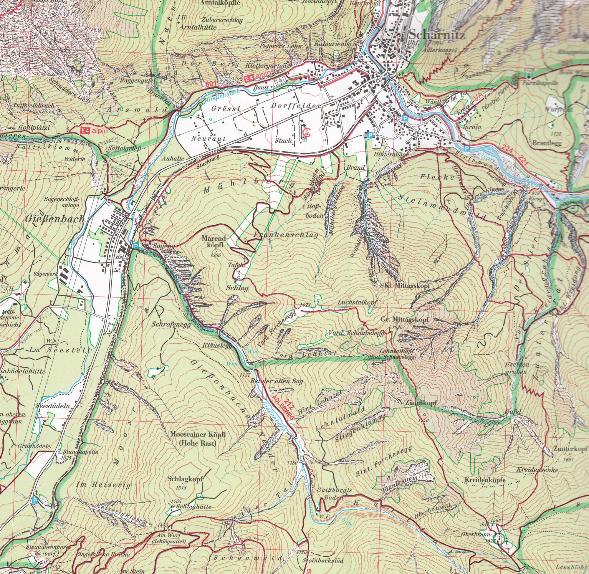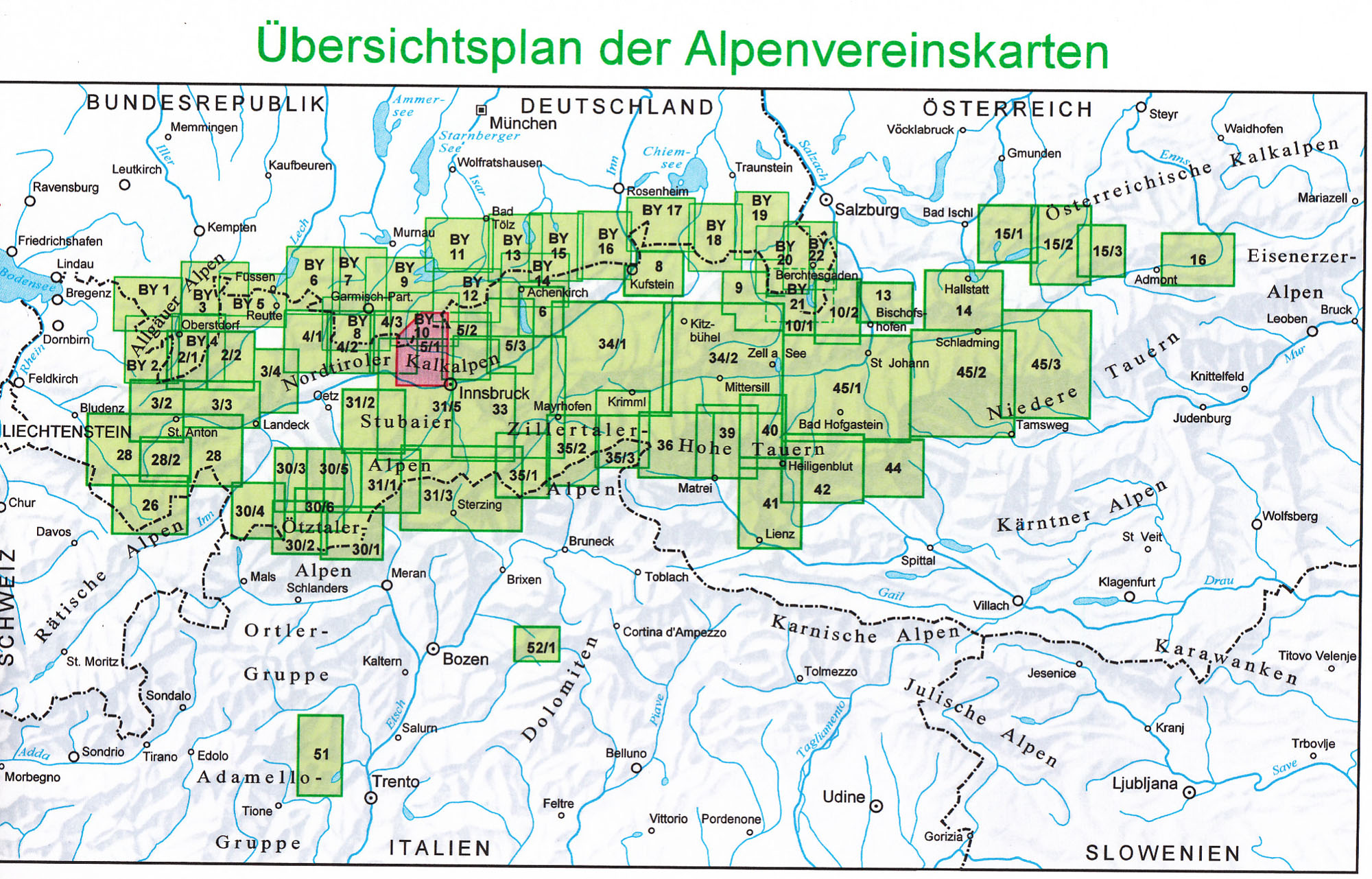 Velice podrobná mapa ze série turistických a lyžarských map vydávaných Německo-Rakouským alpským spolkem. Vrstevnice jsou zakresleny po 20 výškových metrech. Na mapě jsou vyznačeny turistické trasy s úseky fixního jištění, kempy, horské chaty a jiná ubytování. Legenda mapy je v němčině.