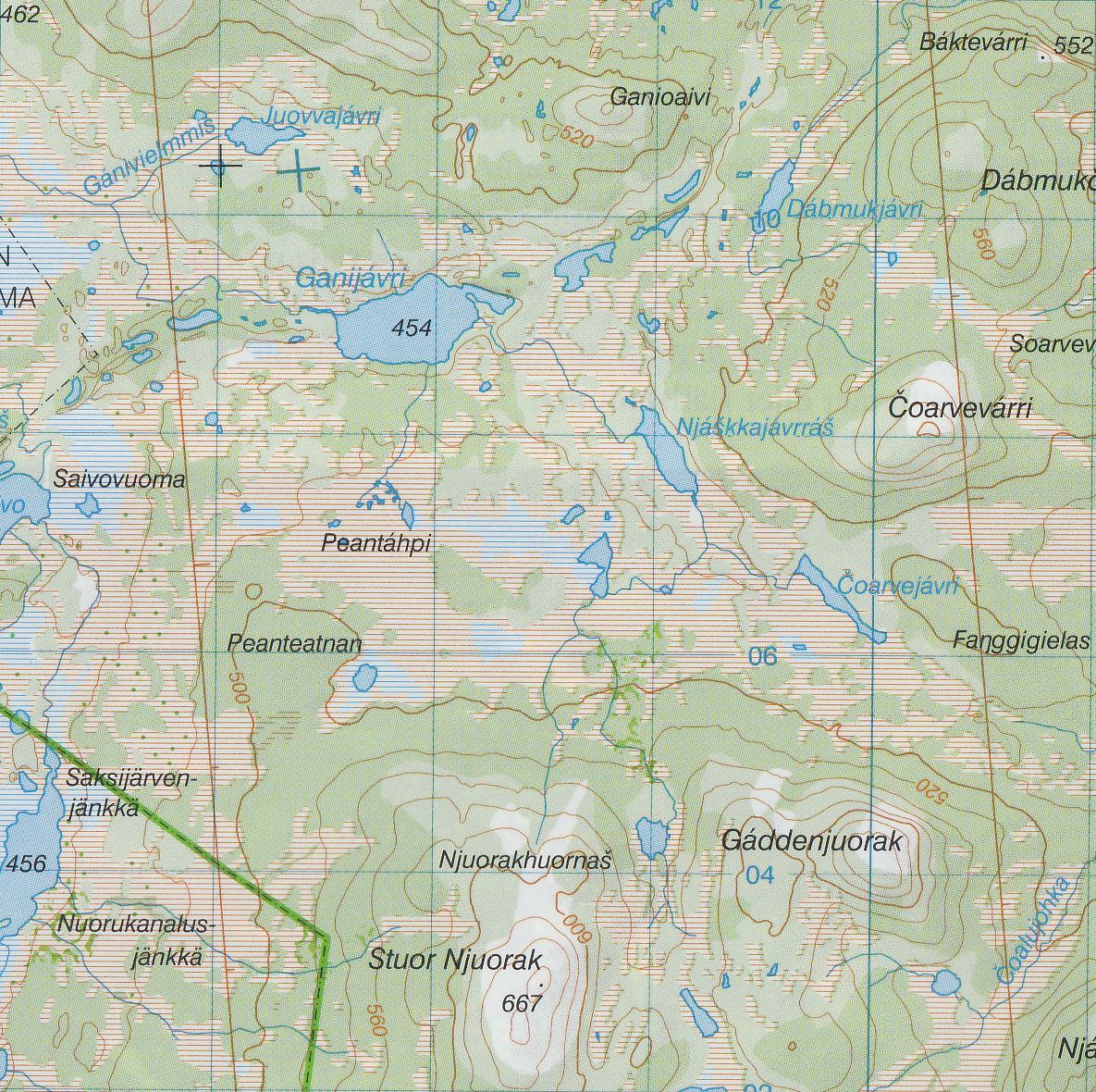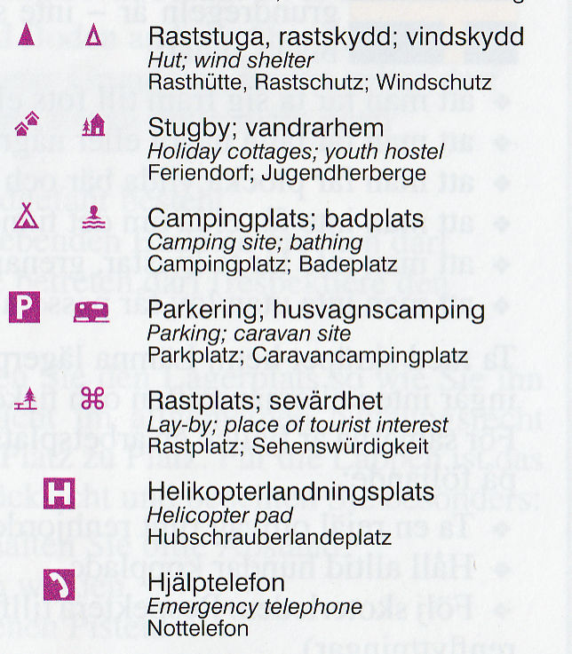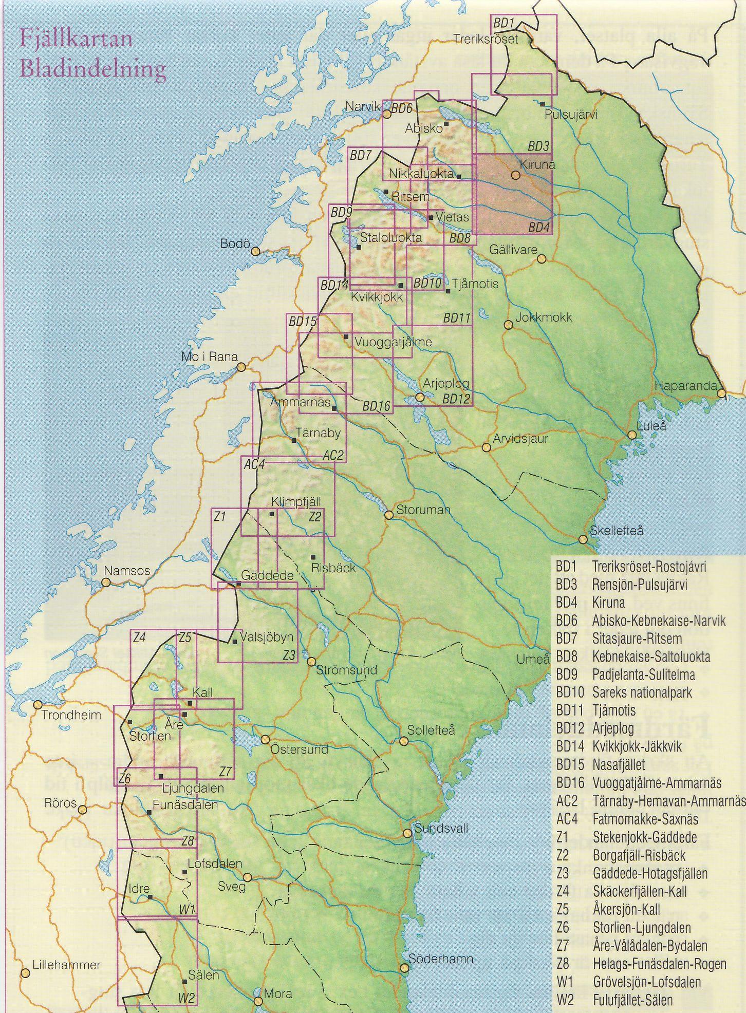 Turistická mapa ze série podrobných topografických map horských oblastí středního a severního Švédska. Vrstevnice jsou zobrazeny v intervalu 20 m a celý reliéf je opatřen stínováním. V mapě naleznete vyznačené trasy pro pěší turistiku a běžecké lyžování, trasy určené pro jízdu na sněžném skůtru, kempy, ubytovny a ostatní druhy ubytování atd. Každý list pokrývá oblast přibližně 80 x 80 km, nebo větší. Mapy obsahují UTM souřadnice a souřadnice zeměpisné šířky a délky po 10'. Legenda mapy je také v angličtině a popisy oblasti na rubu mapy pouze ve švédštině. Některé z listů navíc obsahují stručné poznámky v angličtině ohledně zón s omezeným vstupem.